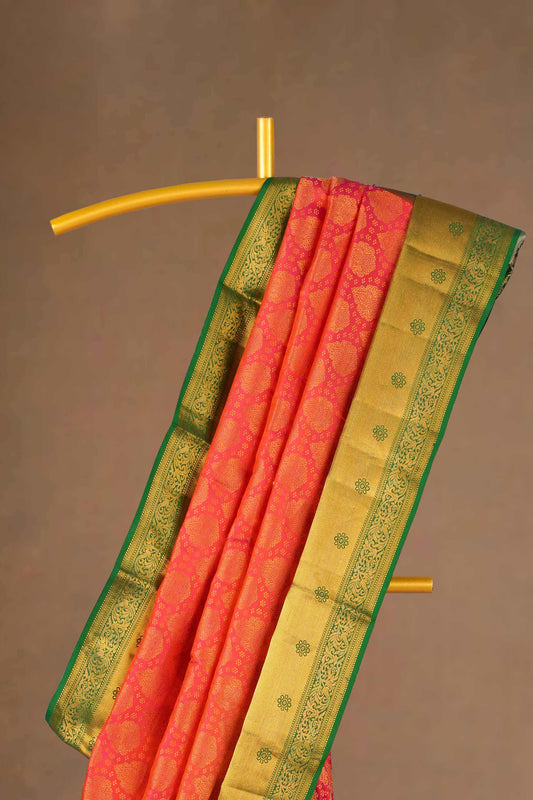 SaleHot Pink & Olive Green Contrast Border Kanchipuram Pure Silk Saree with Bold Circular Buttas