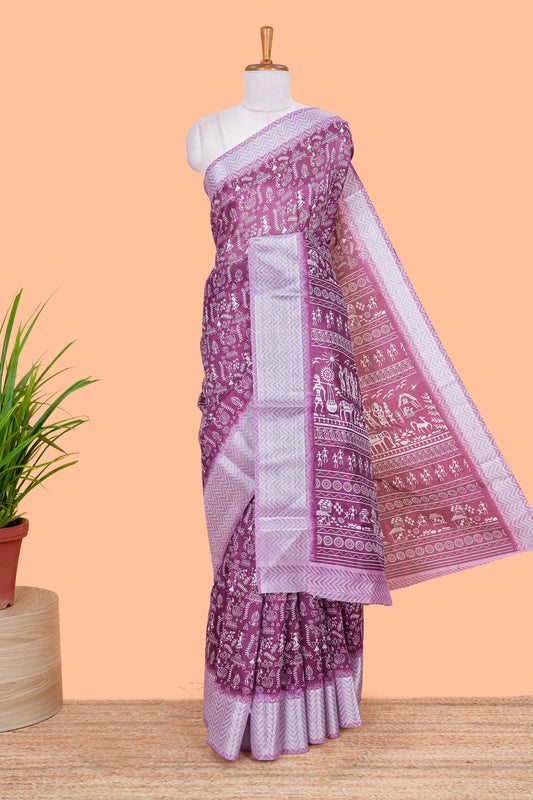 Borderless black south cotton saree with mustard adire batik print on body and pallu