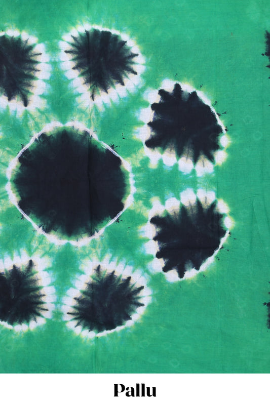 Navy blue batik print sungudi cotton saree with contrast batik border and pallu