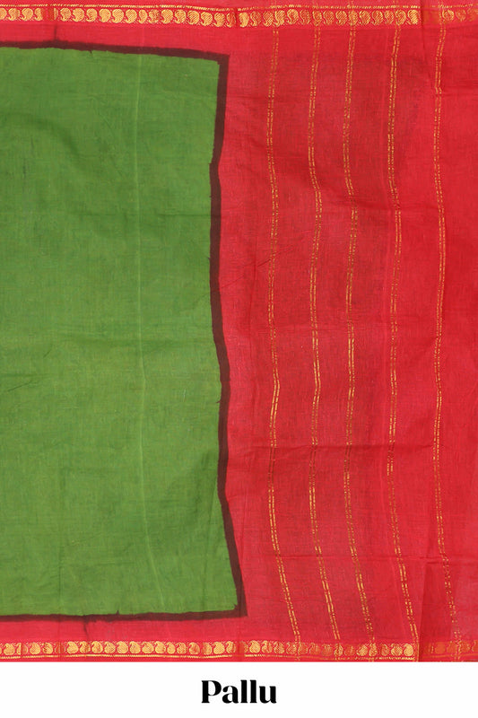 Green plain sungudi cotton saree with contrast zari border and pallu