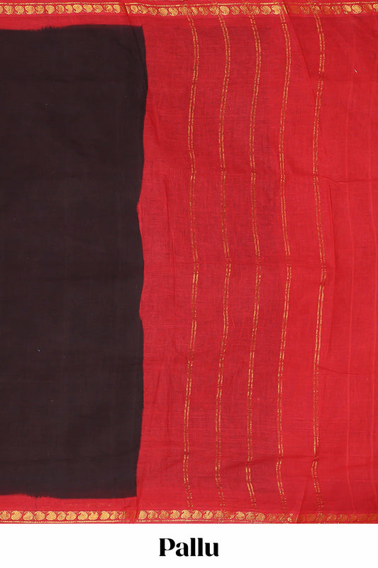 Black plain sungudi cotton saree with contrast zari border and pallu