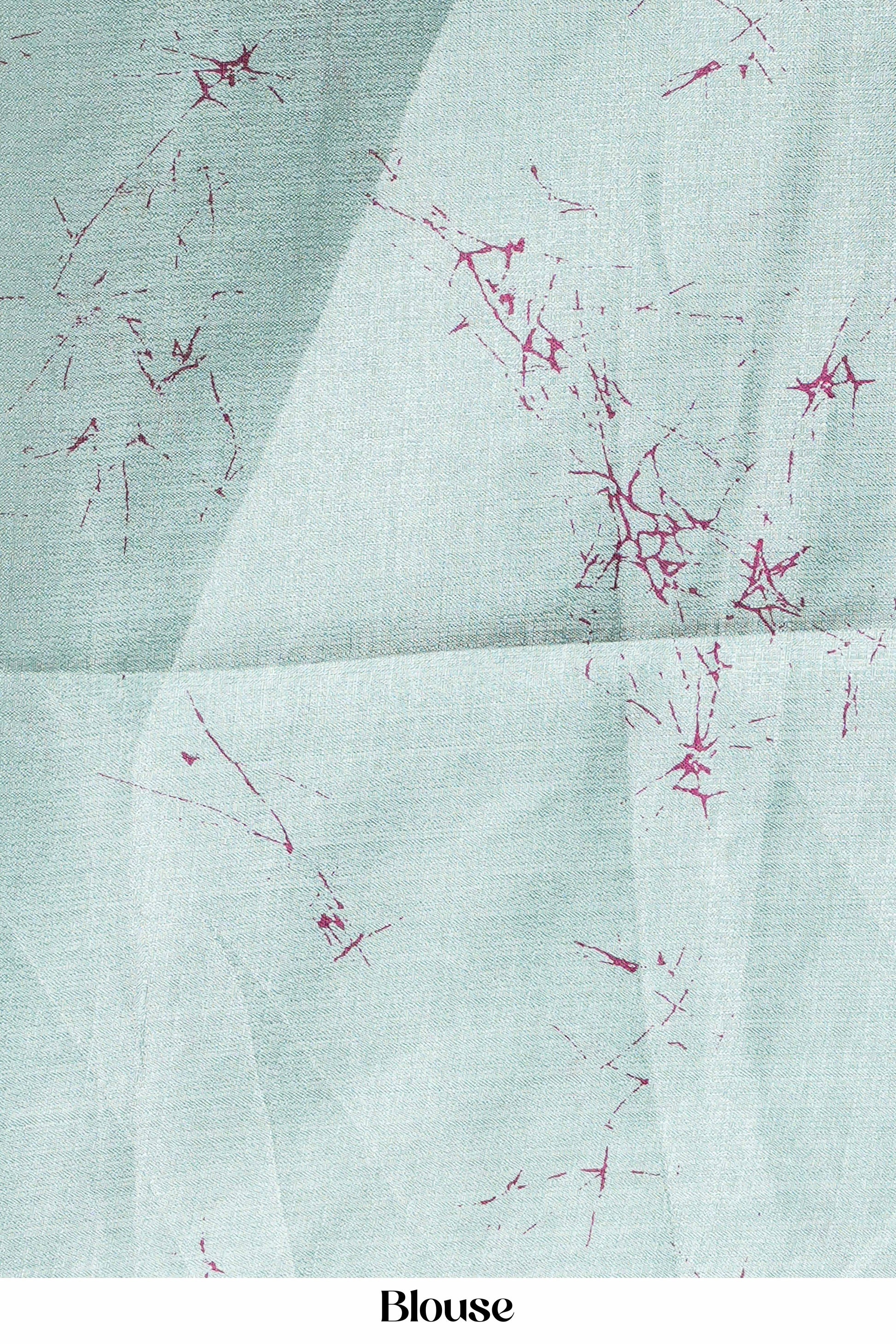 pastel green Khadi Saree All- Over Spiral Digital Printn Along With Blouse