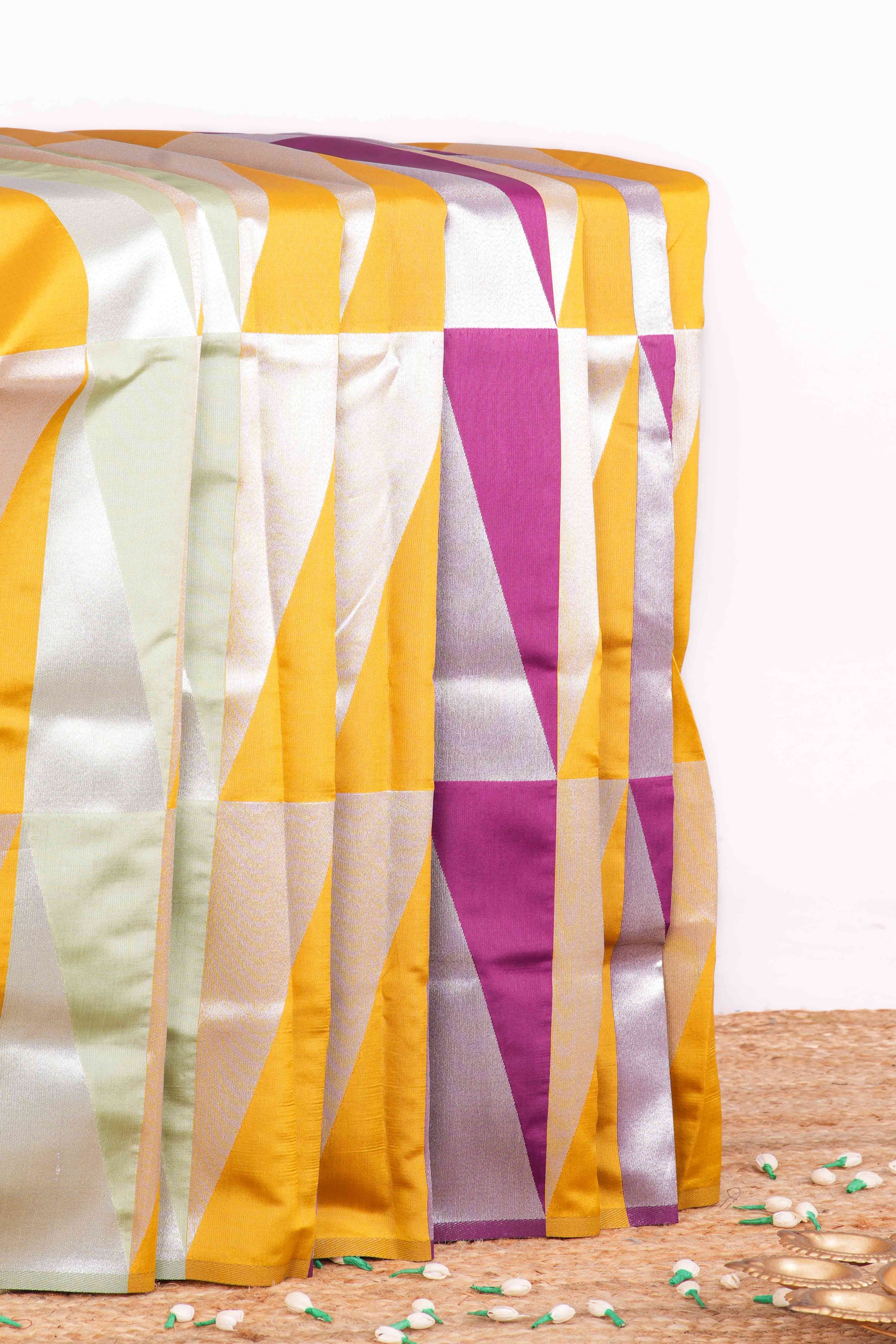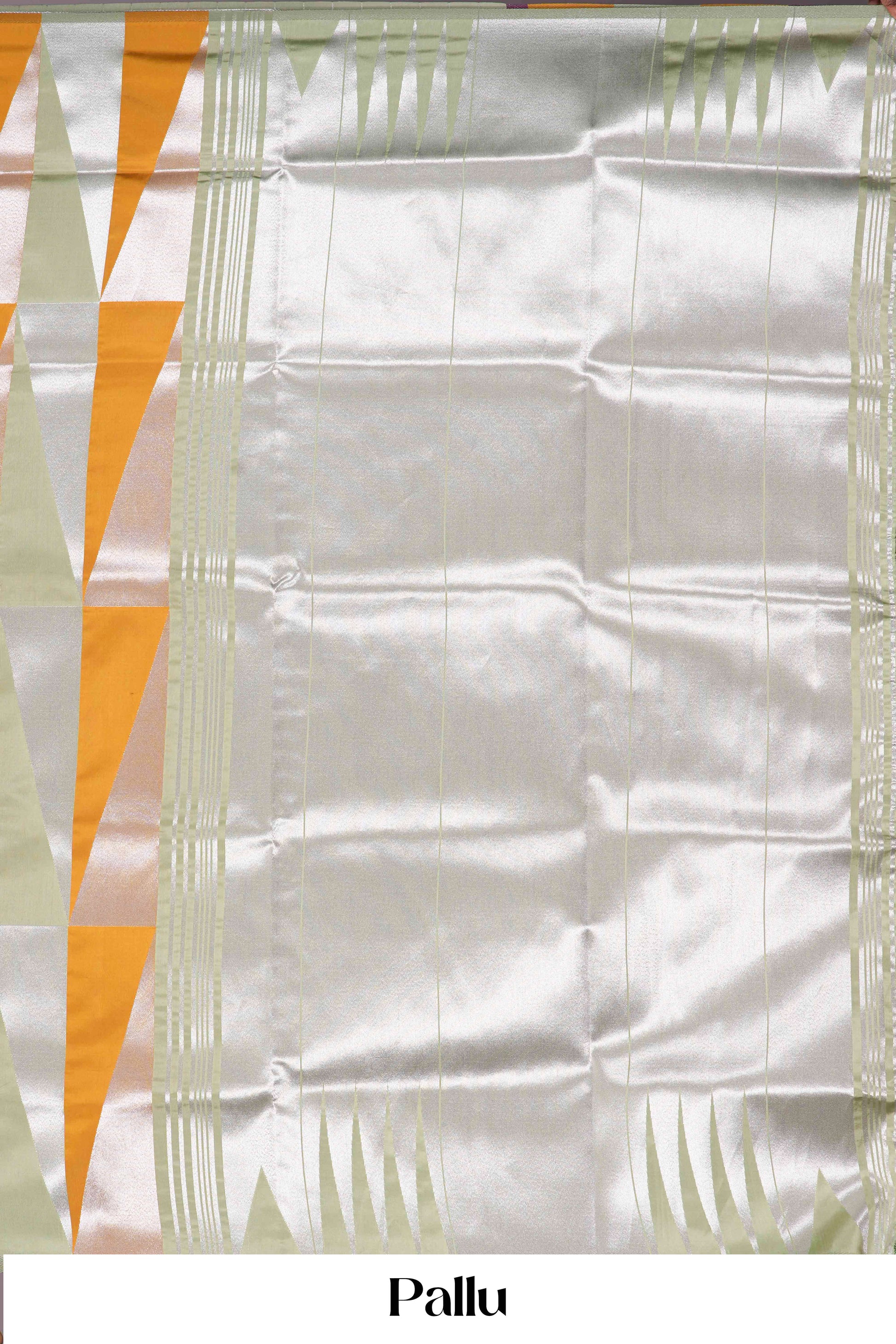 Lichi Silk Saree Abstract Design Silver Zari & Rich Silver Zari Pallu