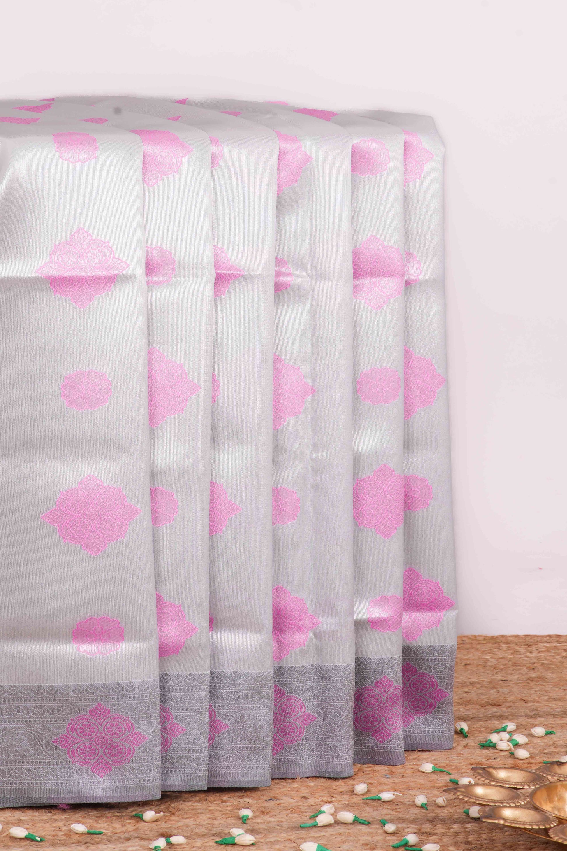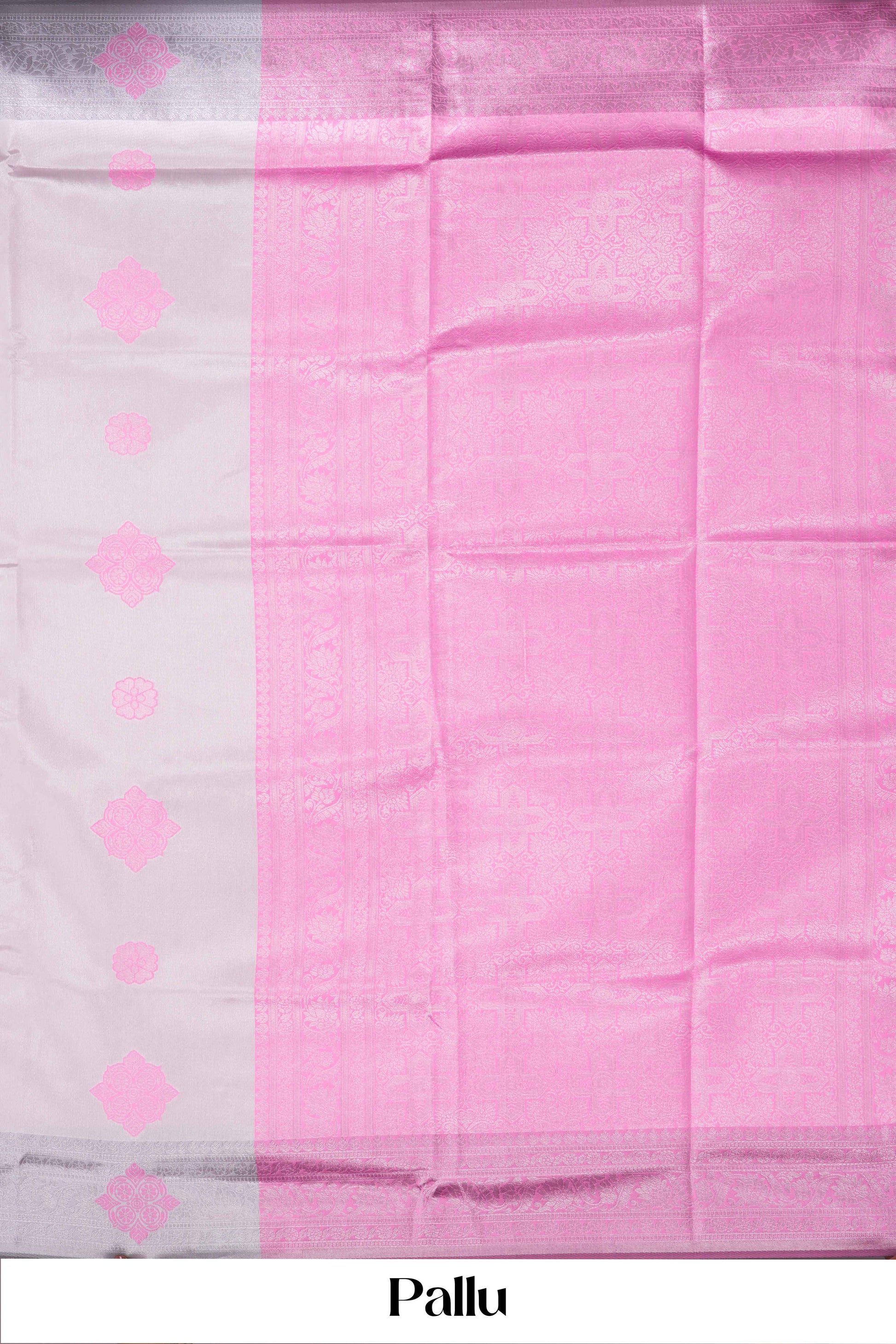 Silver Lichi Tissue Silk Saree Butta & Contrast Pallu