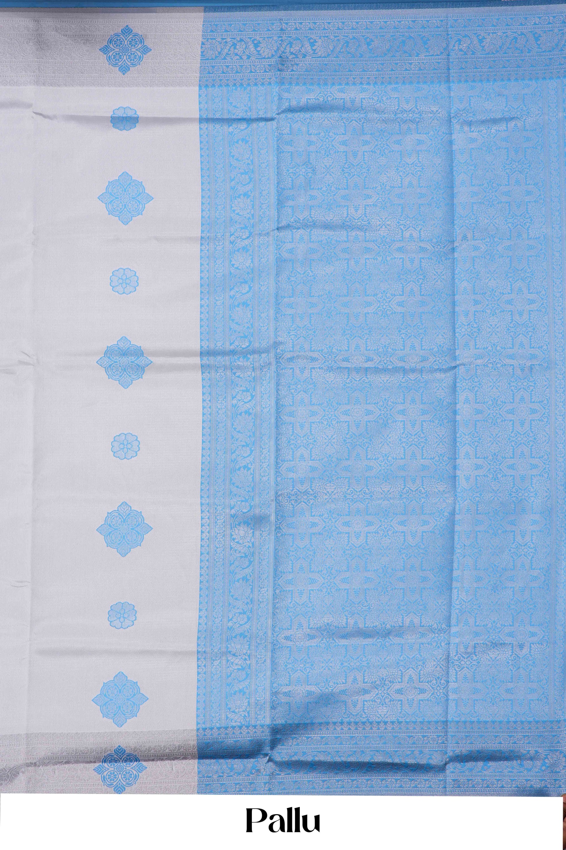 Silver Lichi Tissue Silk Saree Butta & Contrast Pallu