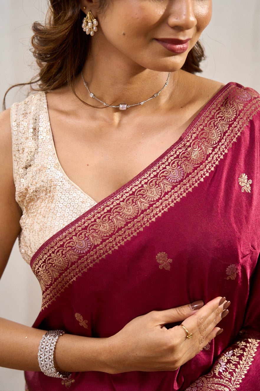 Satin Banaras Gold Zari Floral Designs With Self Border