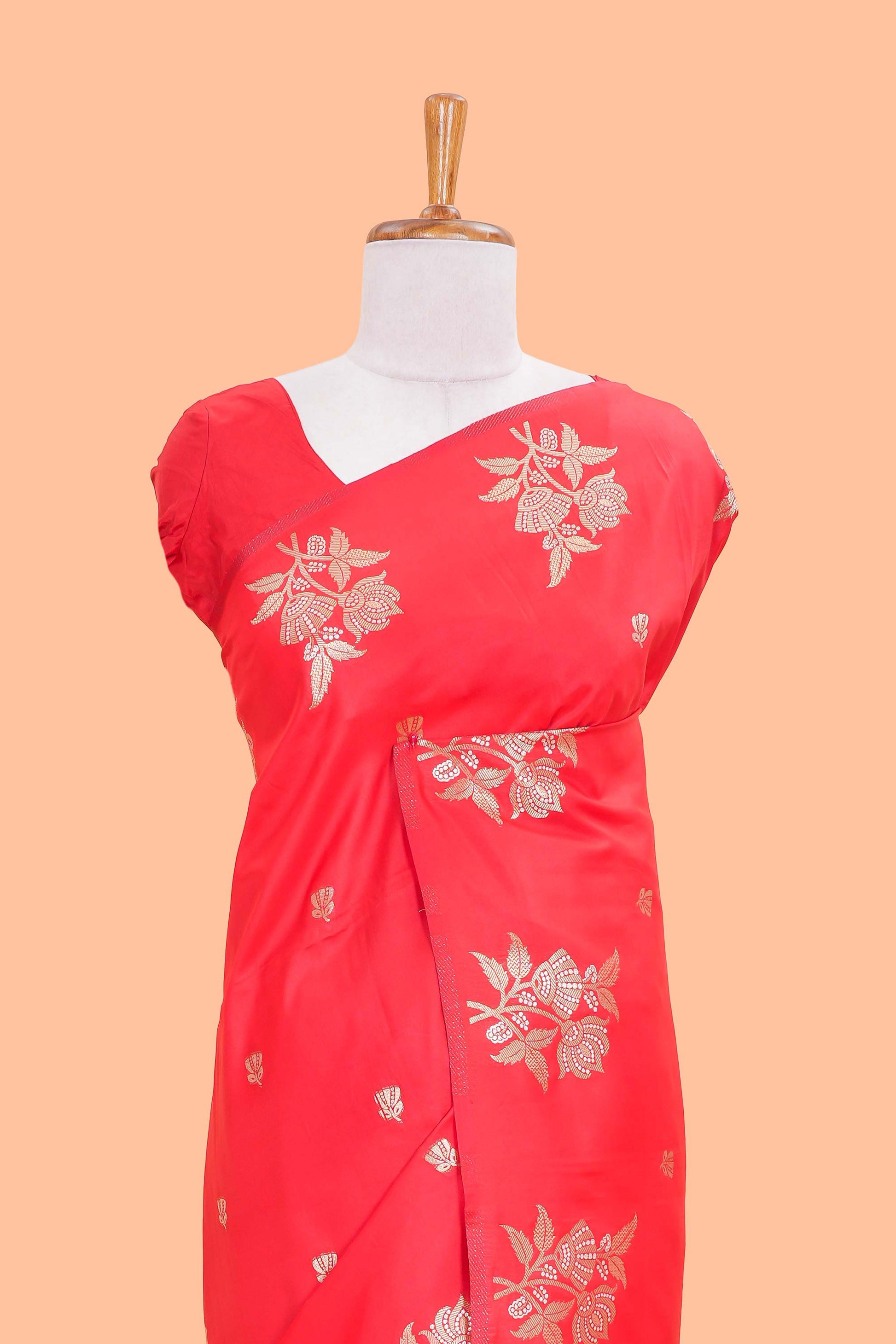 Red Art Silk Saree Flower Zari Motifs Across The Body & Jaal Design Pallu Along With Blouse