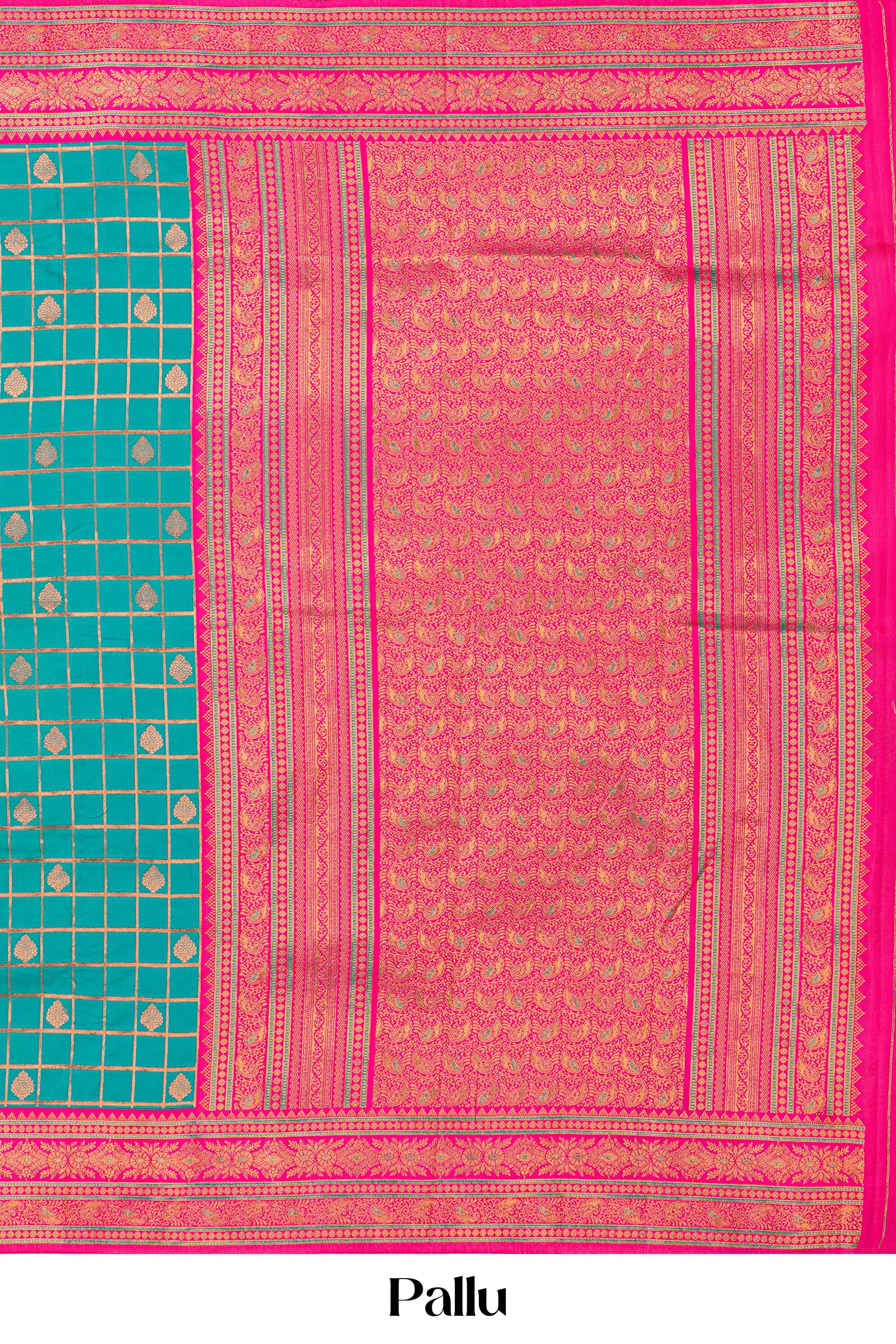peacock green Art Silk Saree checks With Zari Buttas Spread Across The Body & Rich Traditional Gold Zari Border. Contrast Zari Weaving Pallu Along With Contrast Zari Butta Design Blouse