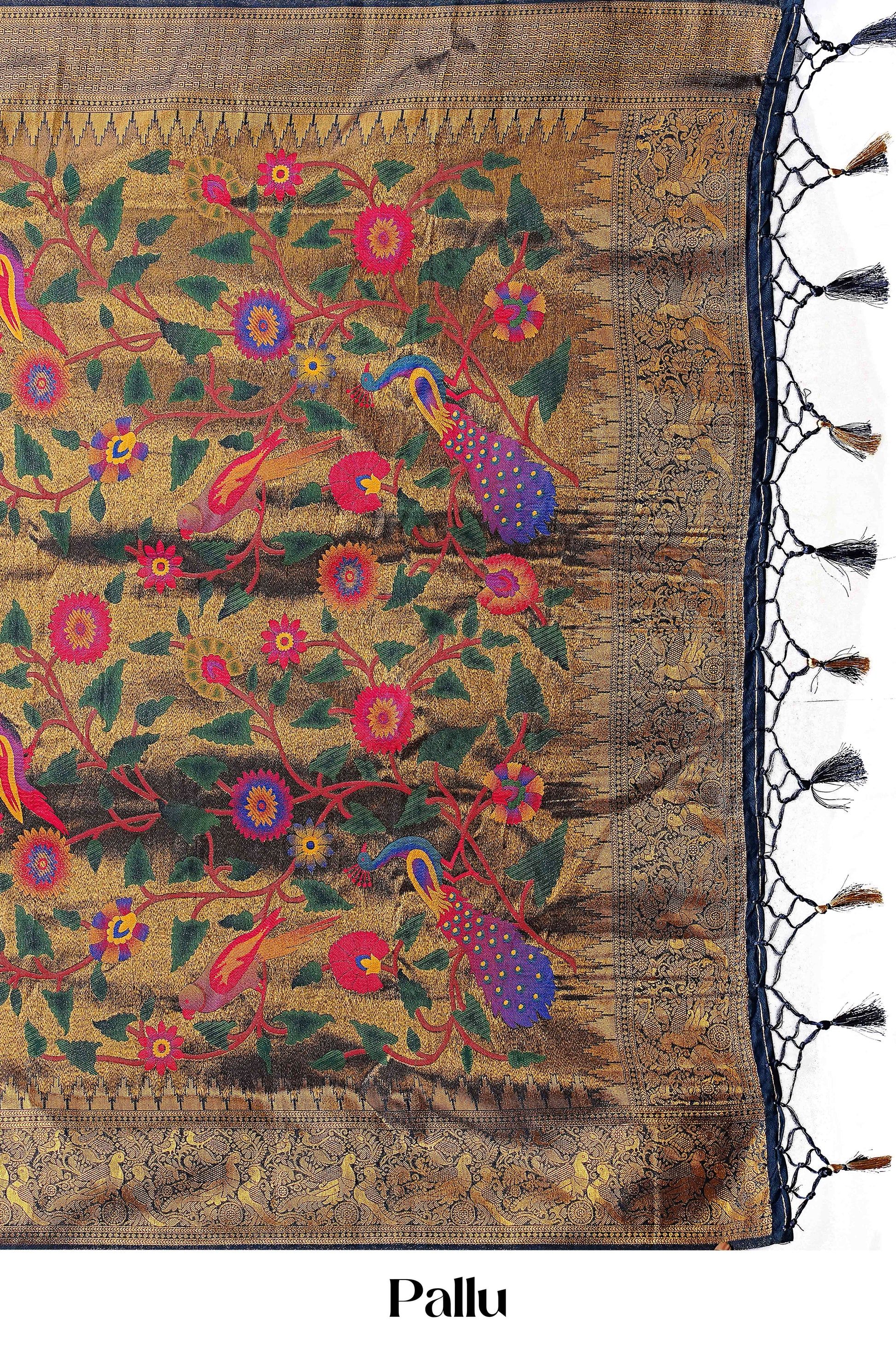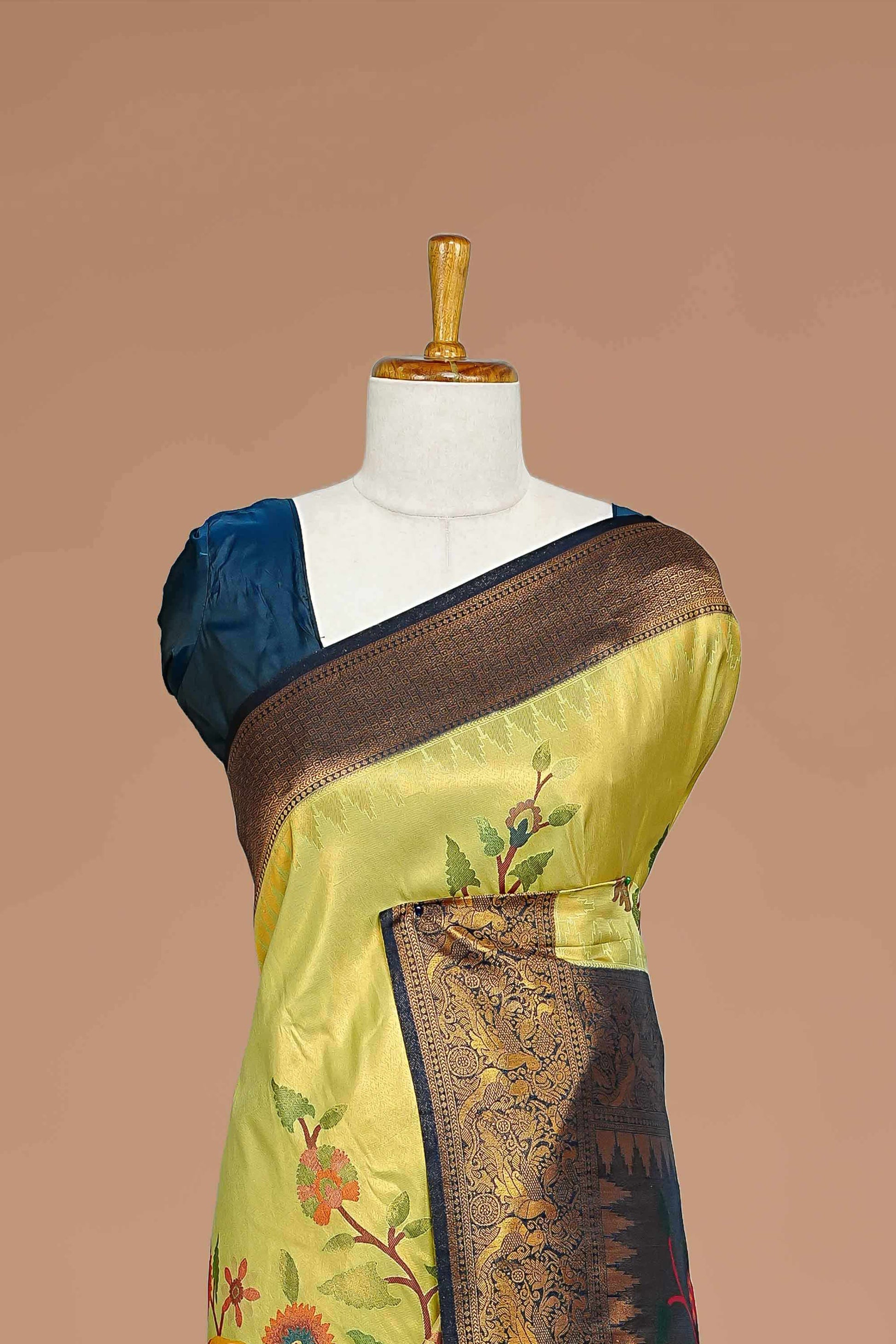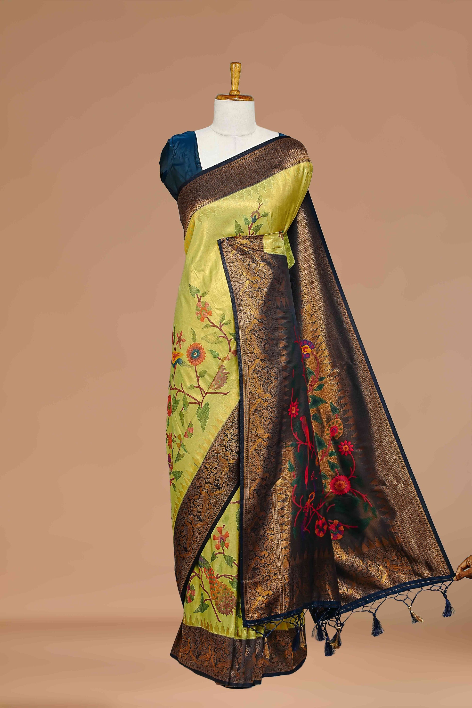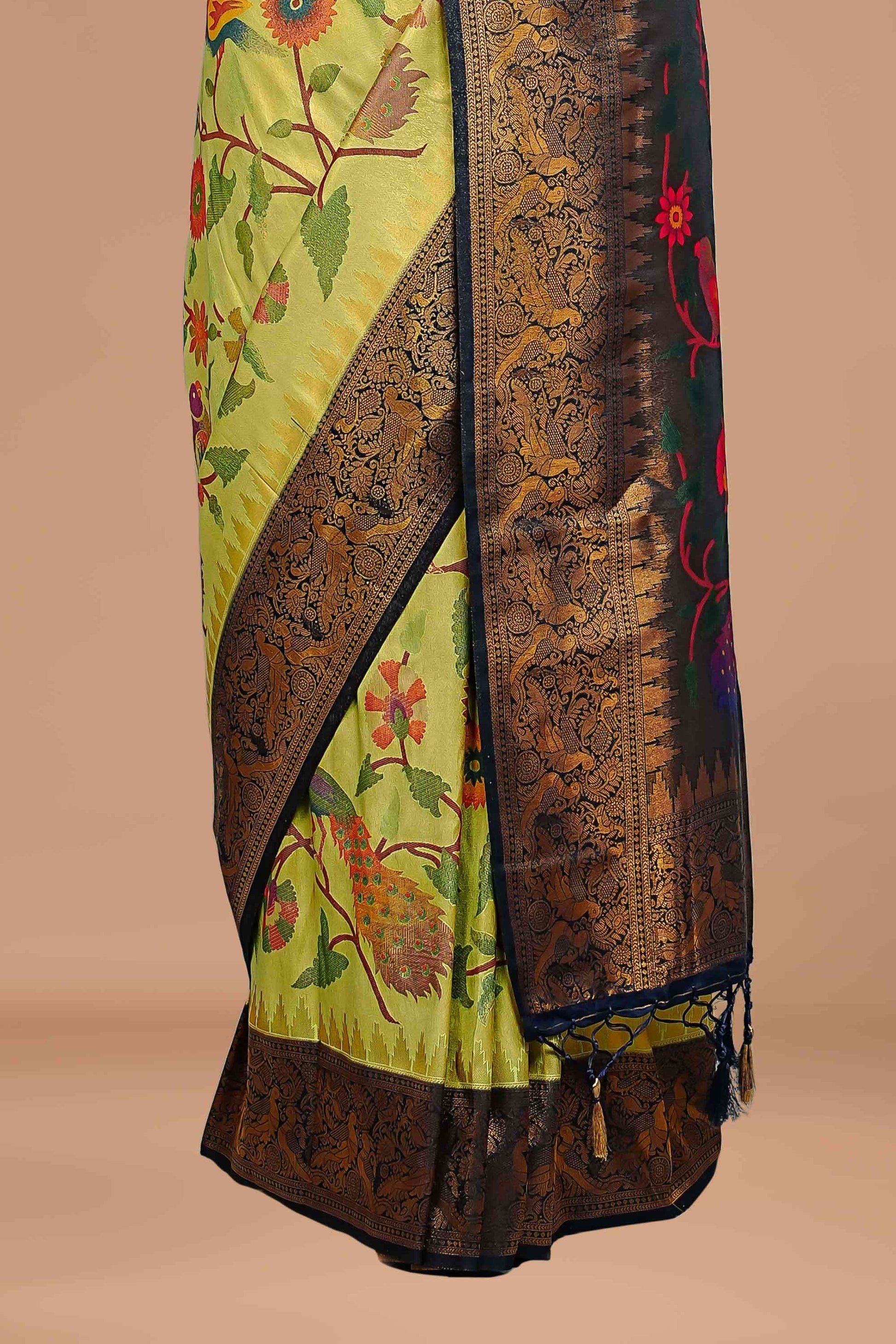 Body Tissue Paithani Peacock With Parrot Design With Border