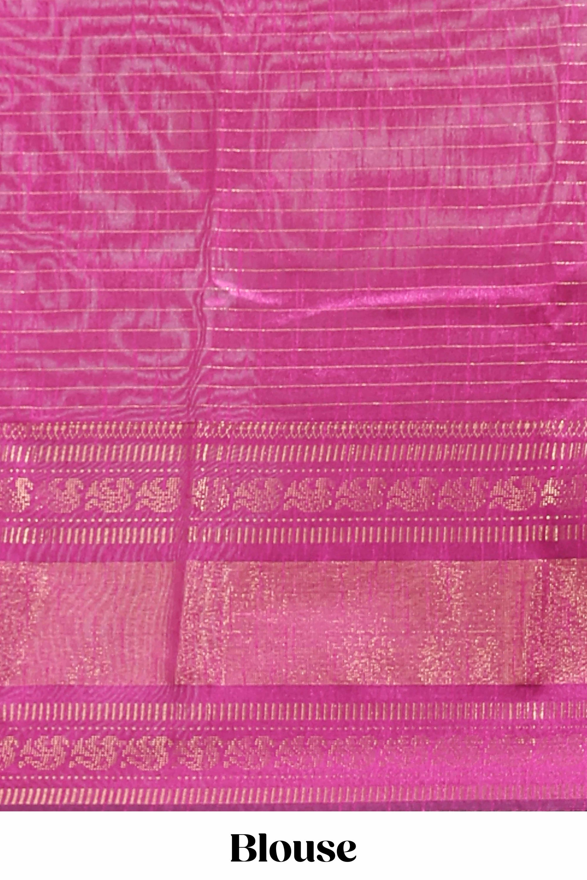 Beige checked tussar saree with contrast pink zari border and checked blouse