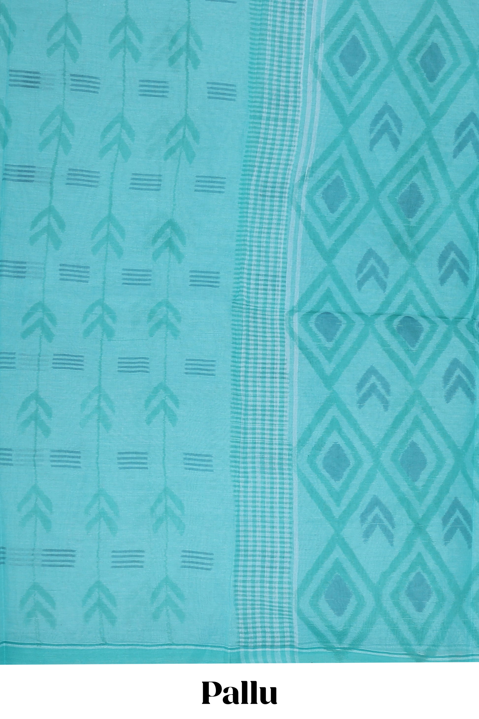 Blue geometric pattern bengal cotton saree with self border and matching pallu