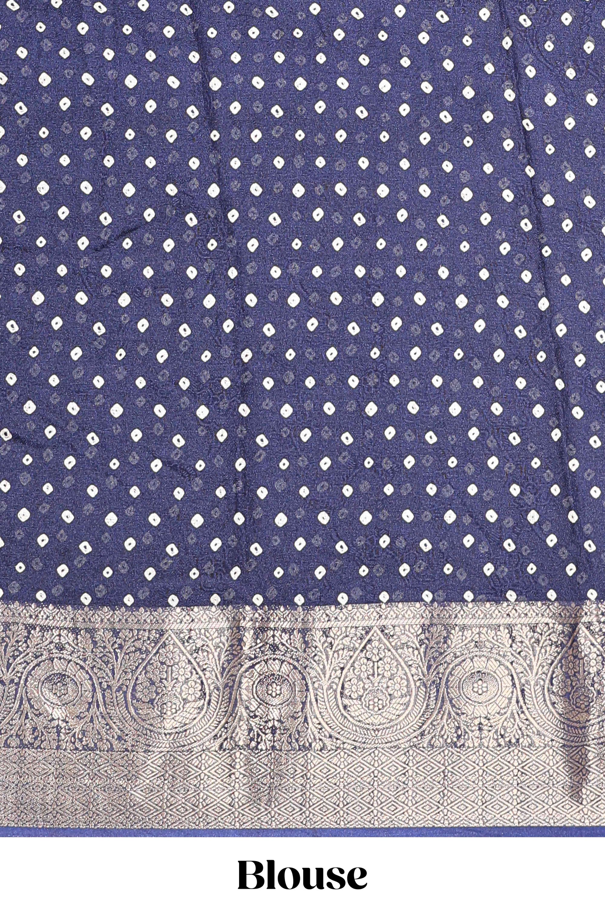 Blue marsh mellow bandhani dot saree with gold zari border and butta blouse