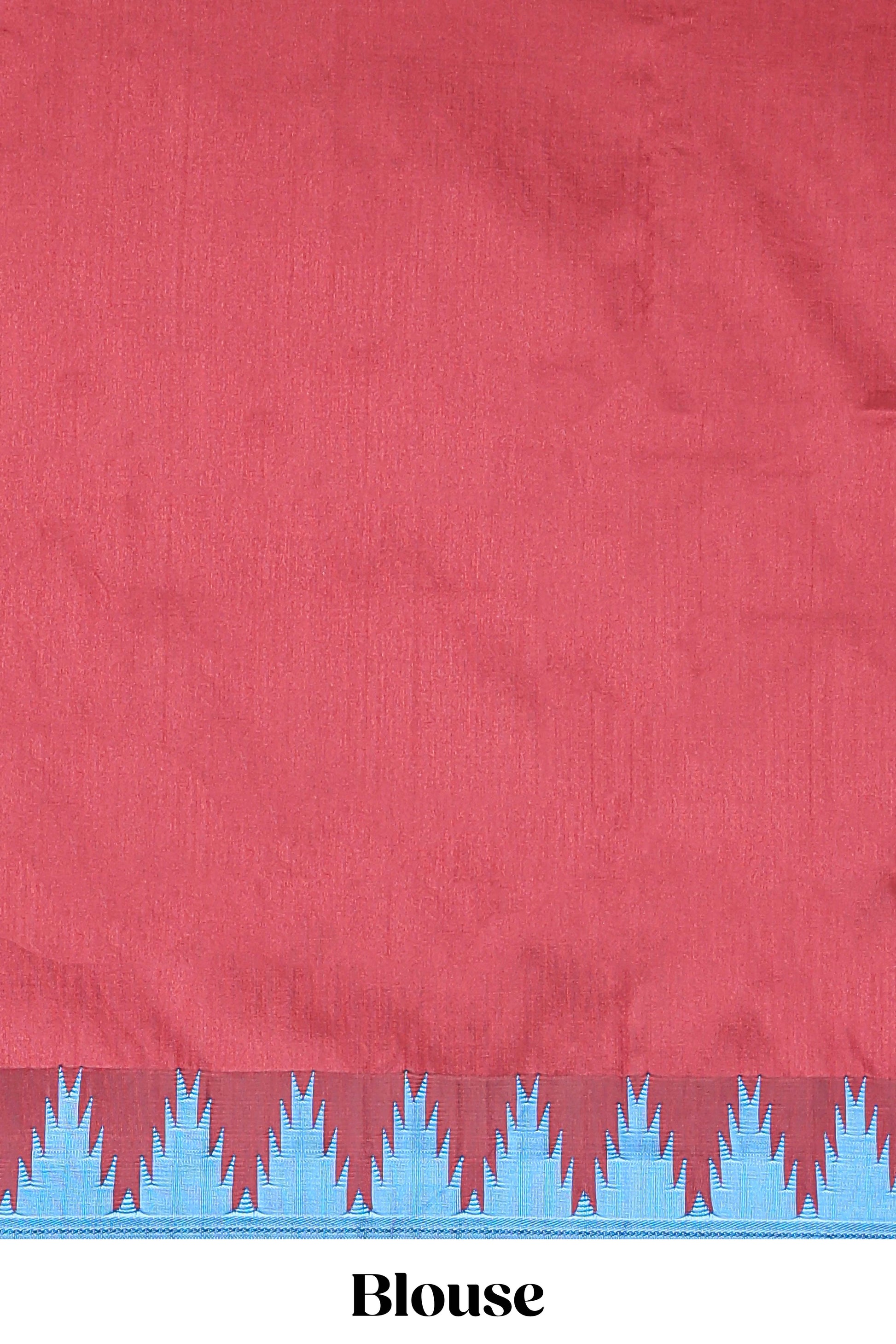 Blue plain poly cotton saree with contrast pallu and geometric border