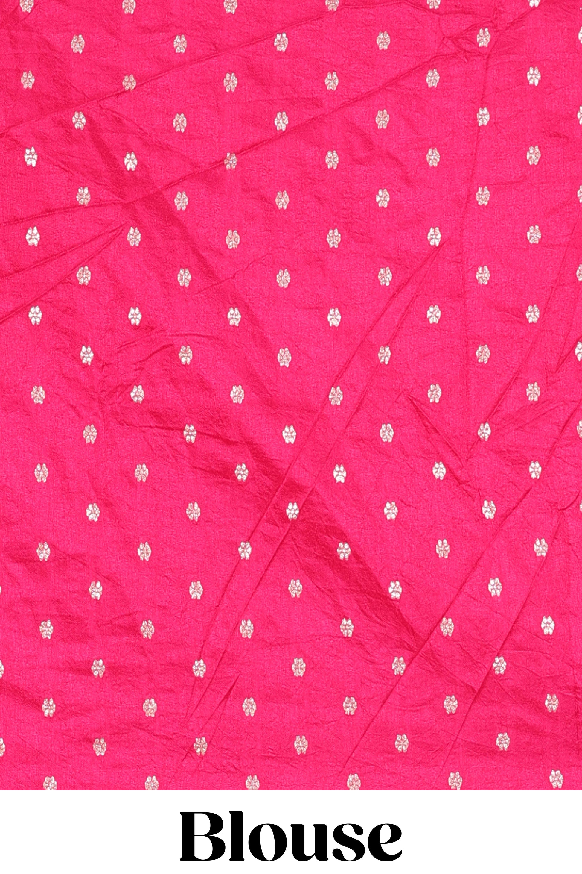 Blue viscose dola silk saree with all-over zari butta, elephant motif pallu & contrast blouse