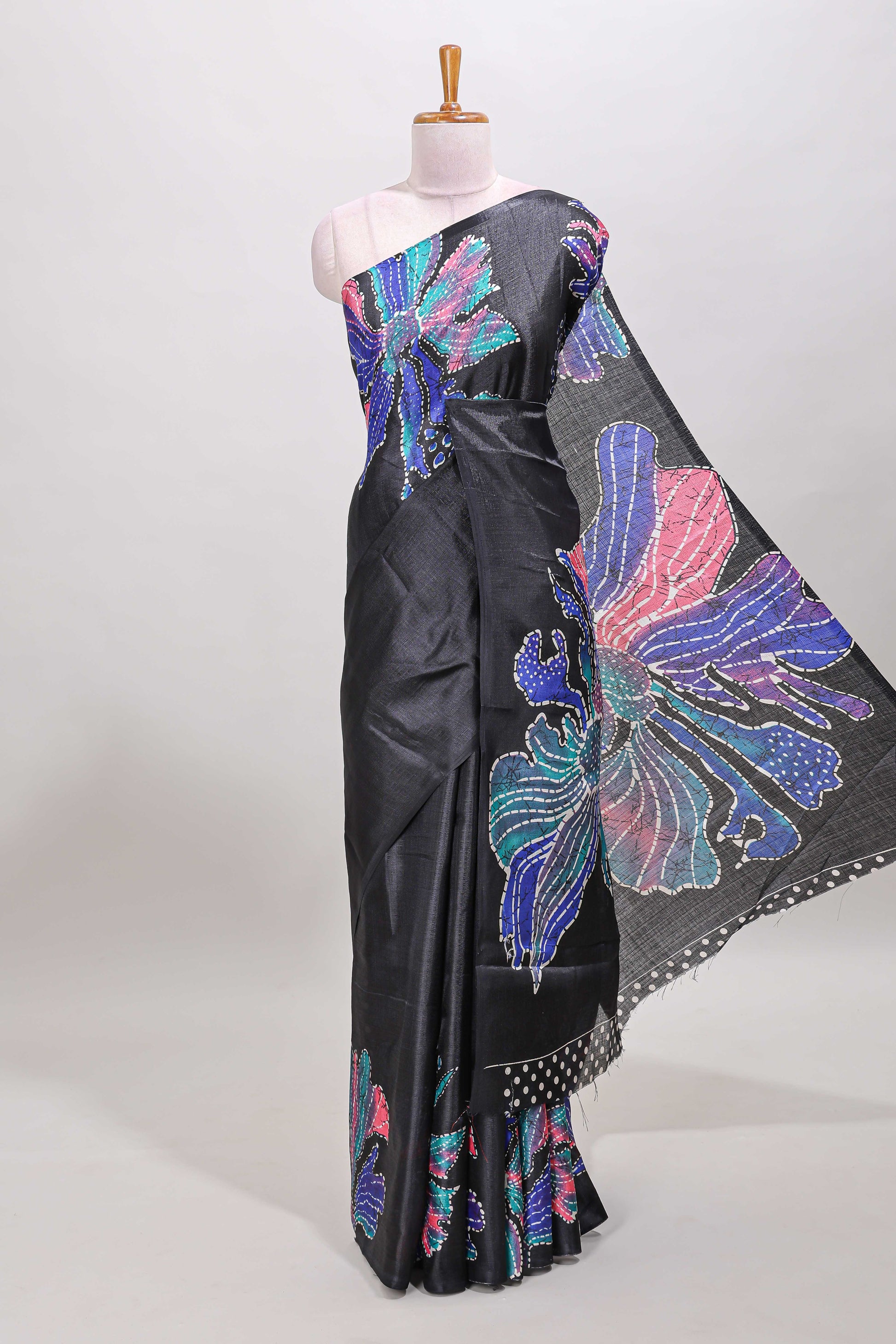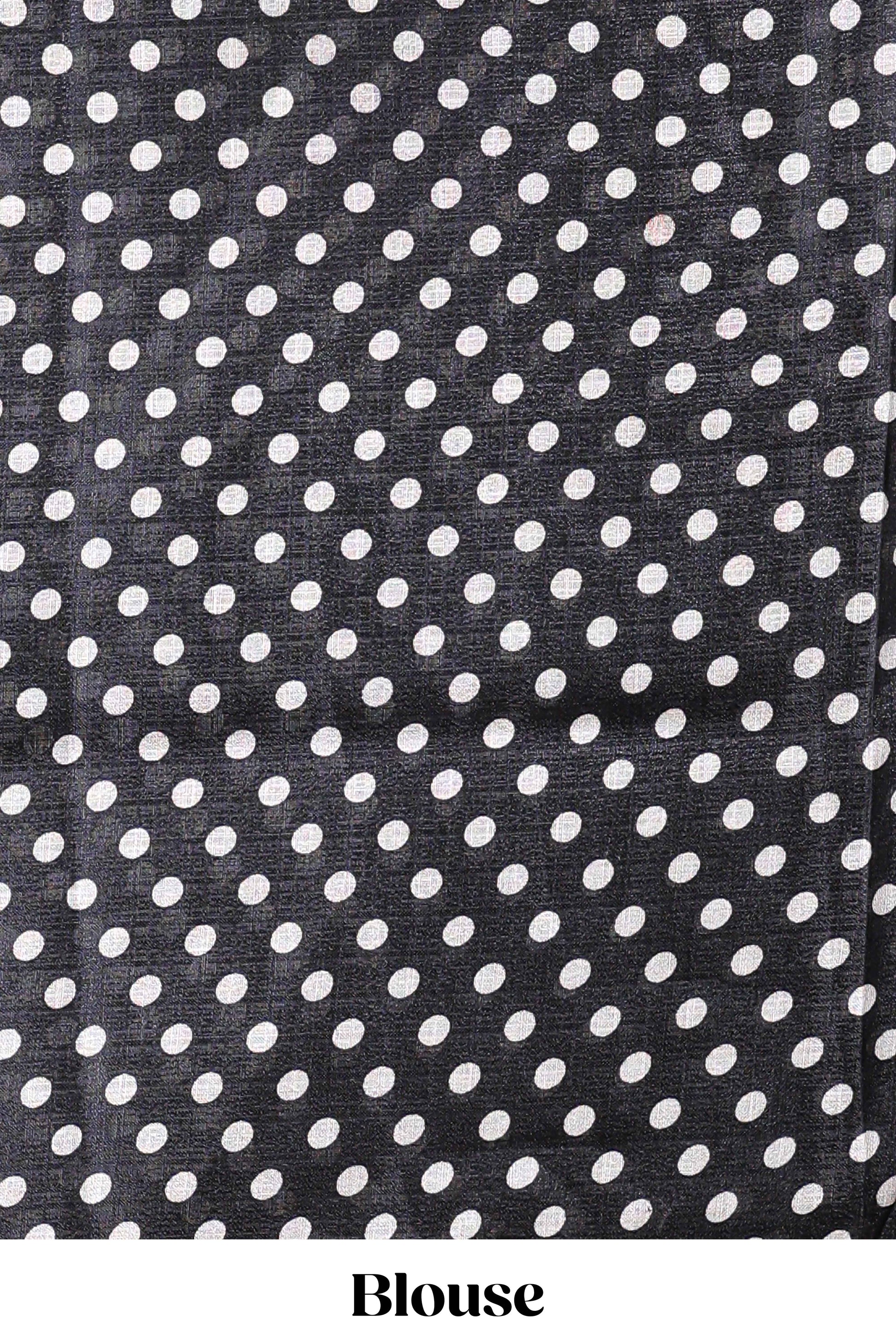 Borderless black floral print south cotton saree with matching butta blouse