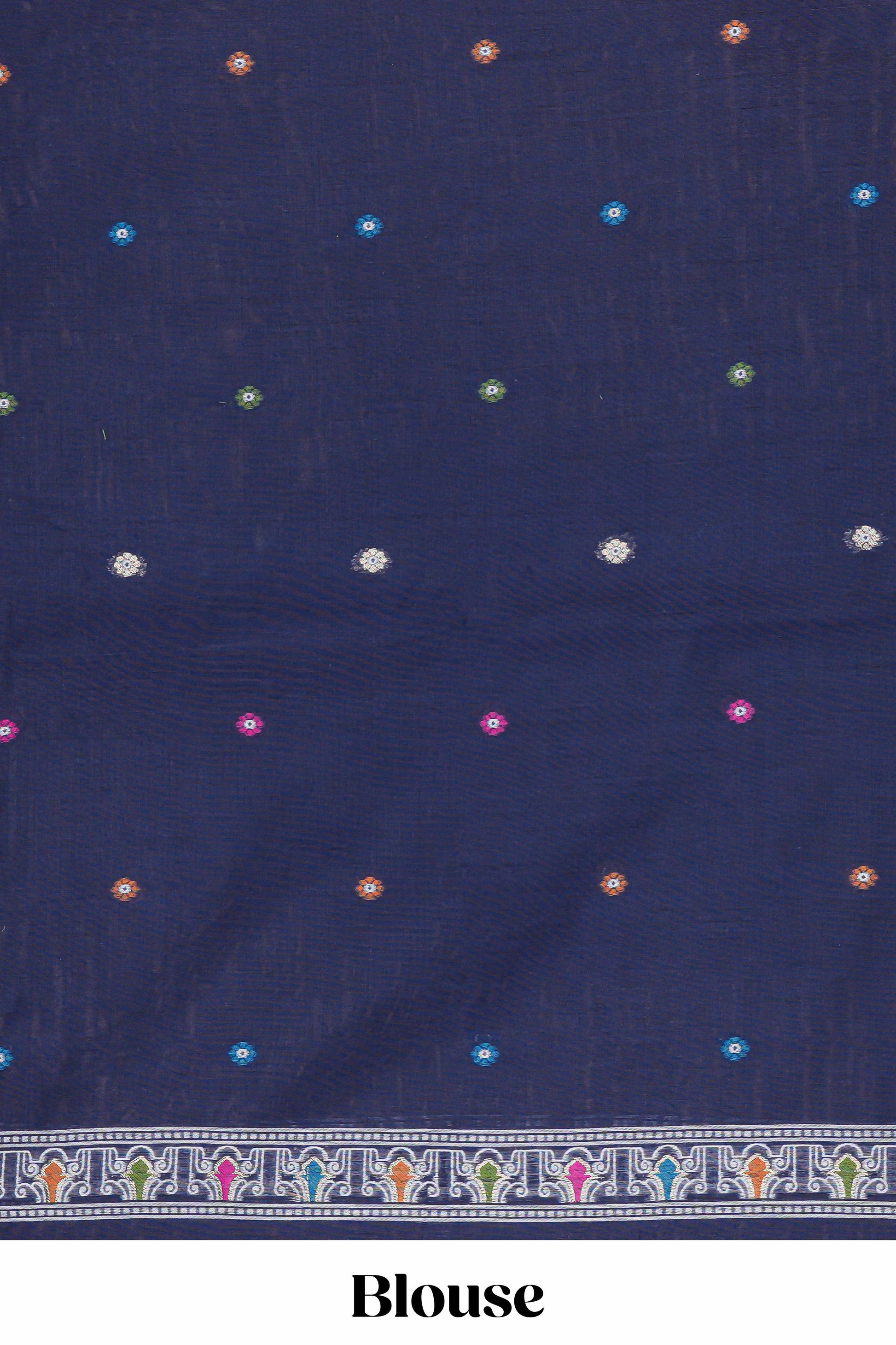 Borderless blue floral motif munga cotton saree with floral printed pallu and matching blouse