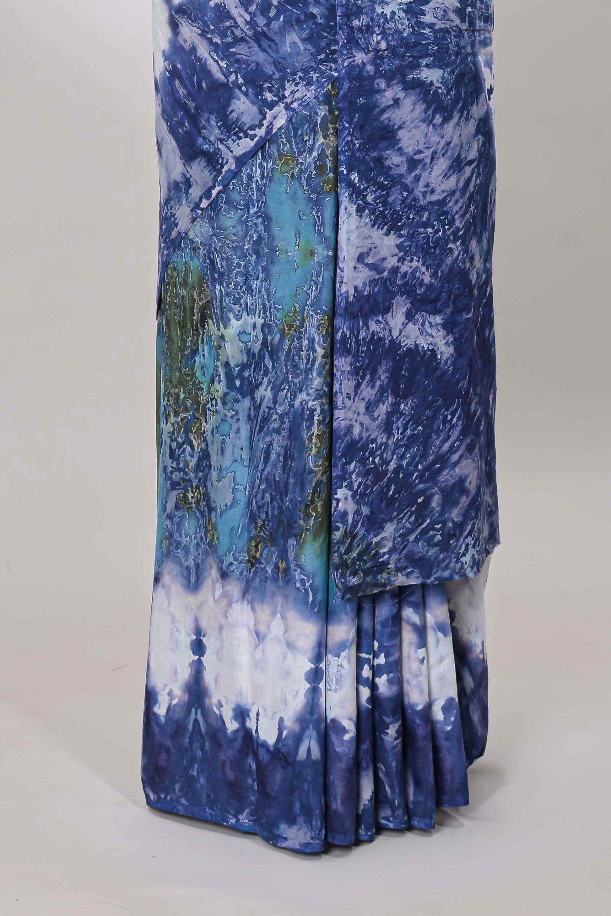 Borderless multicolor tie and dye shibori print mul mul cotton saree with matching pallu