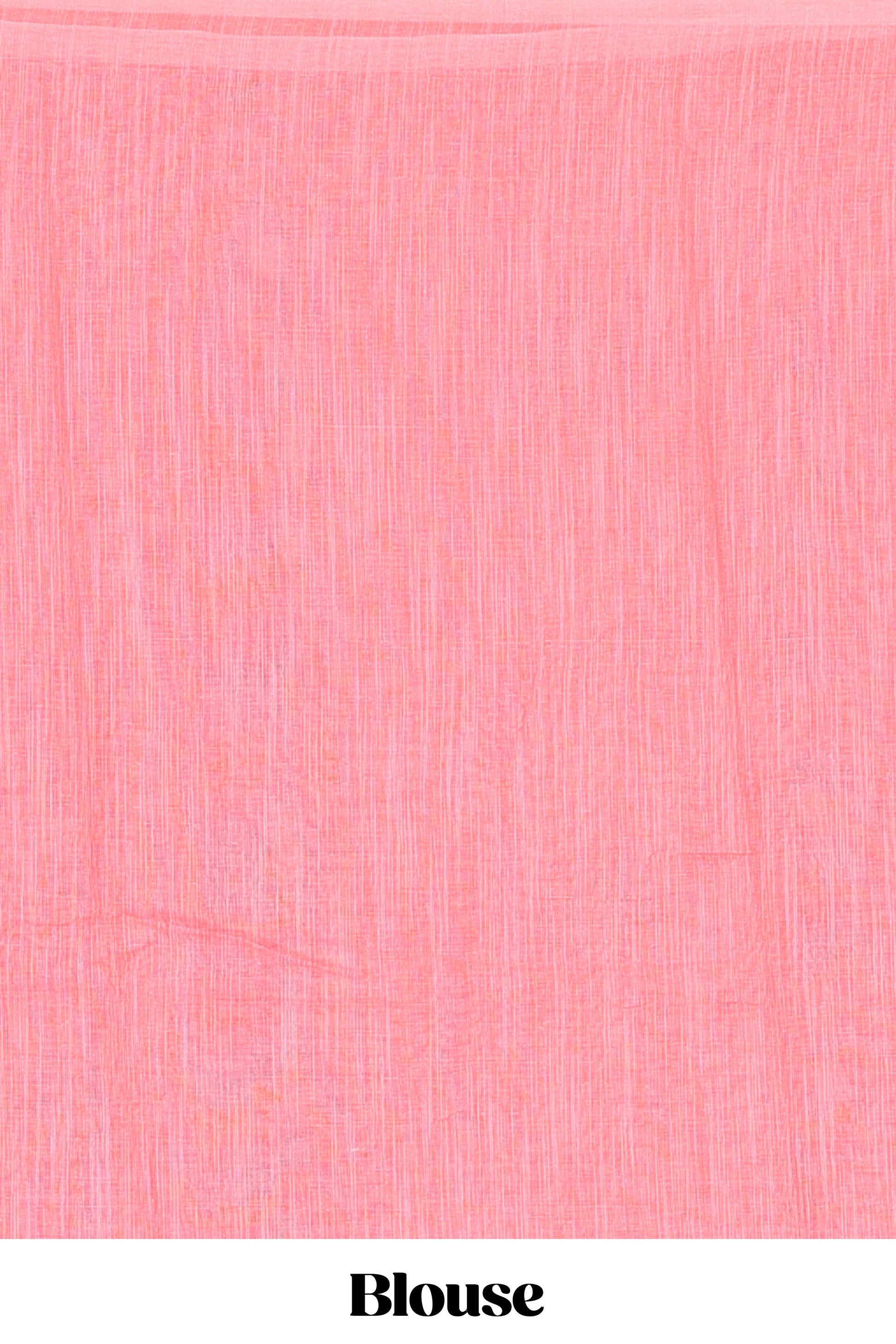 Borderless pink linen saree with floral design, printed pallu and blouse