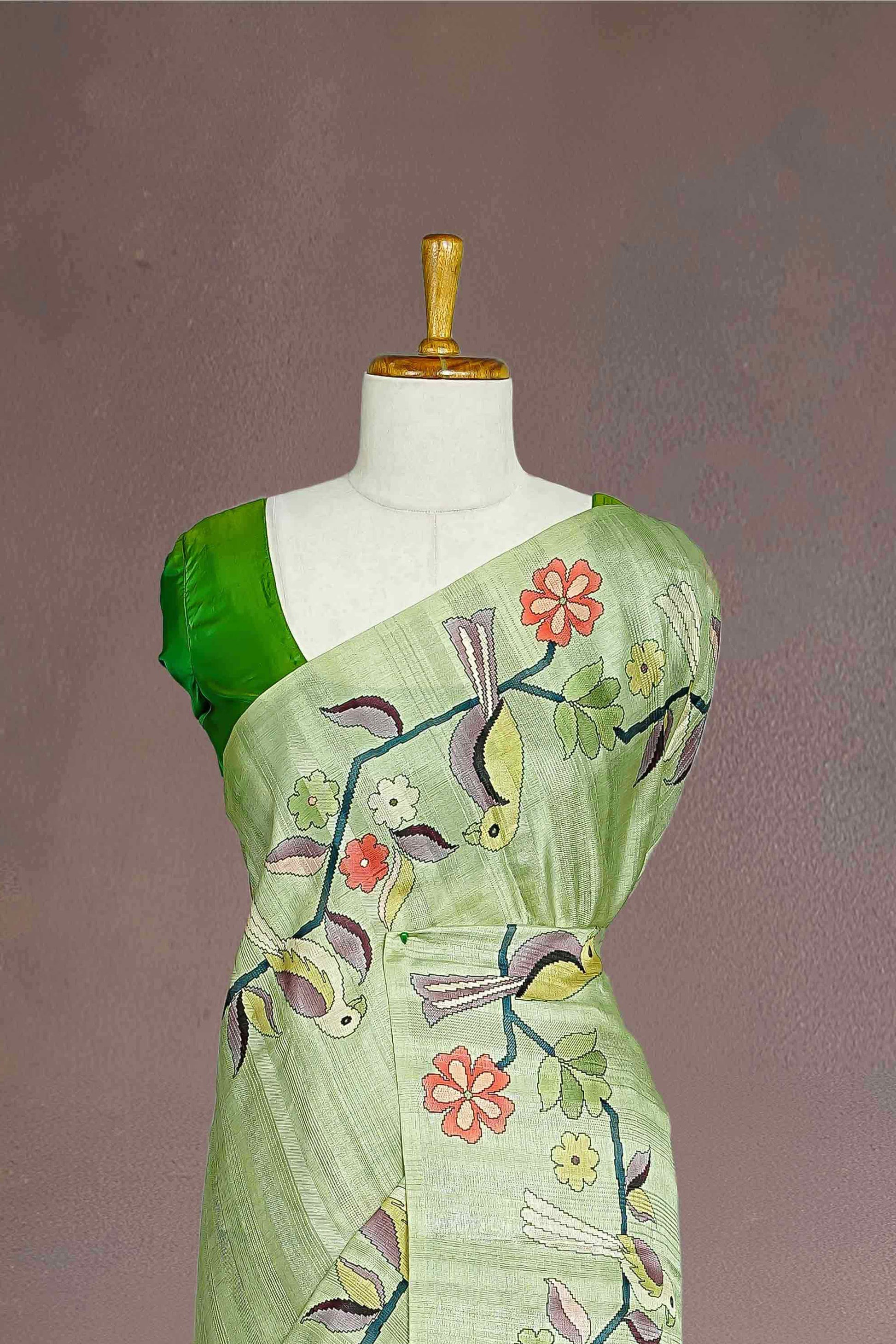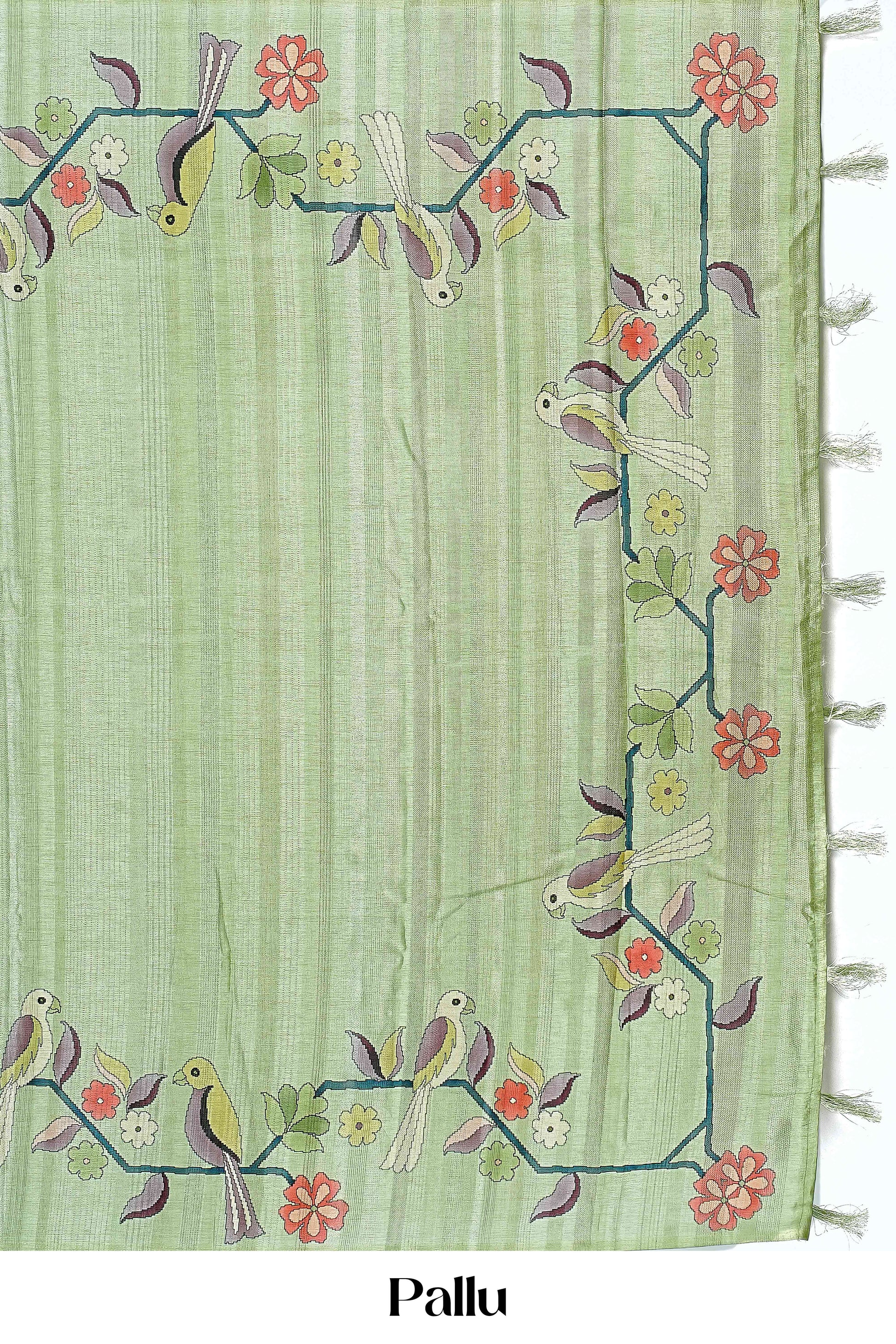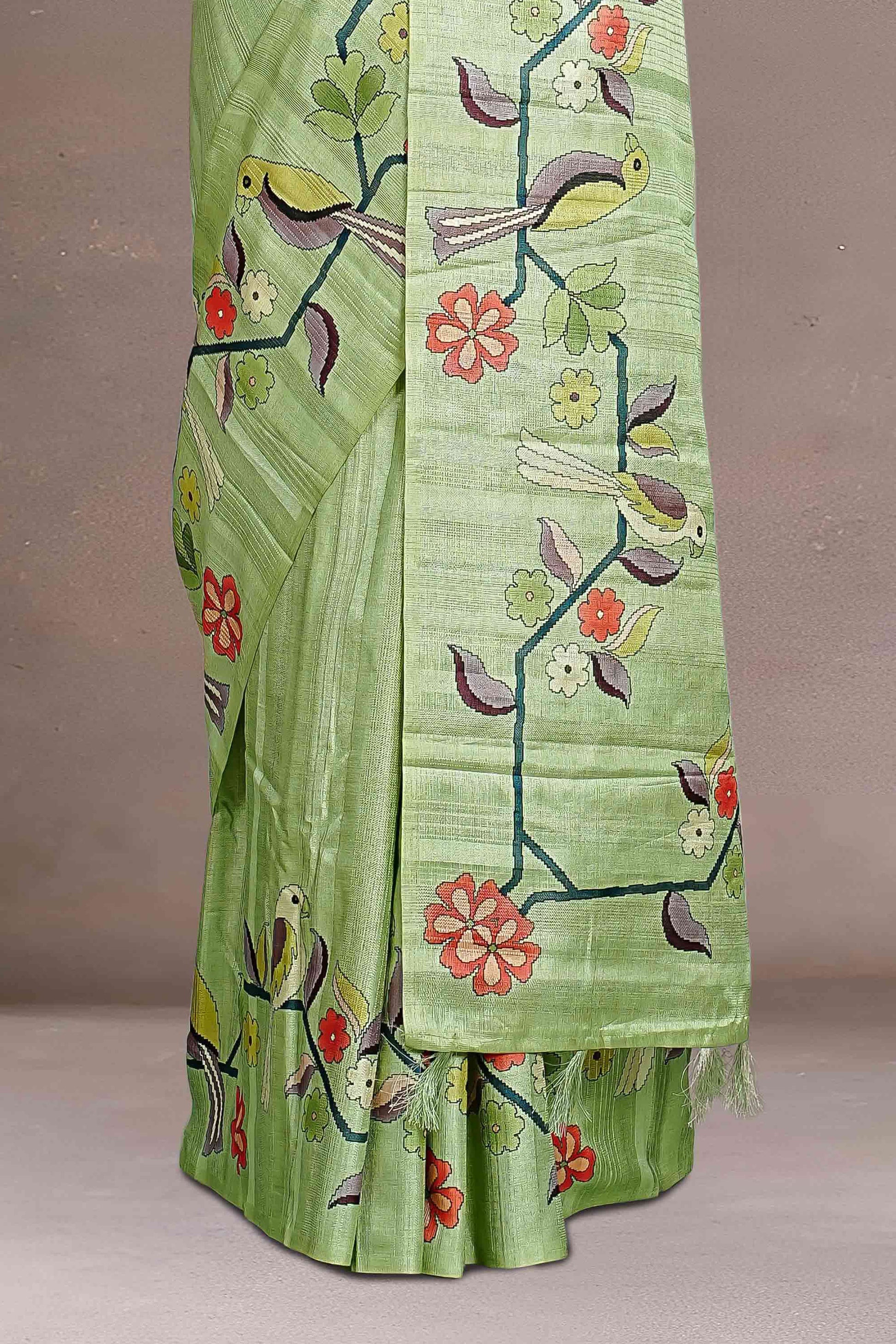 Green Tussar Sarees Digital Print