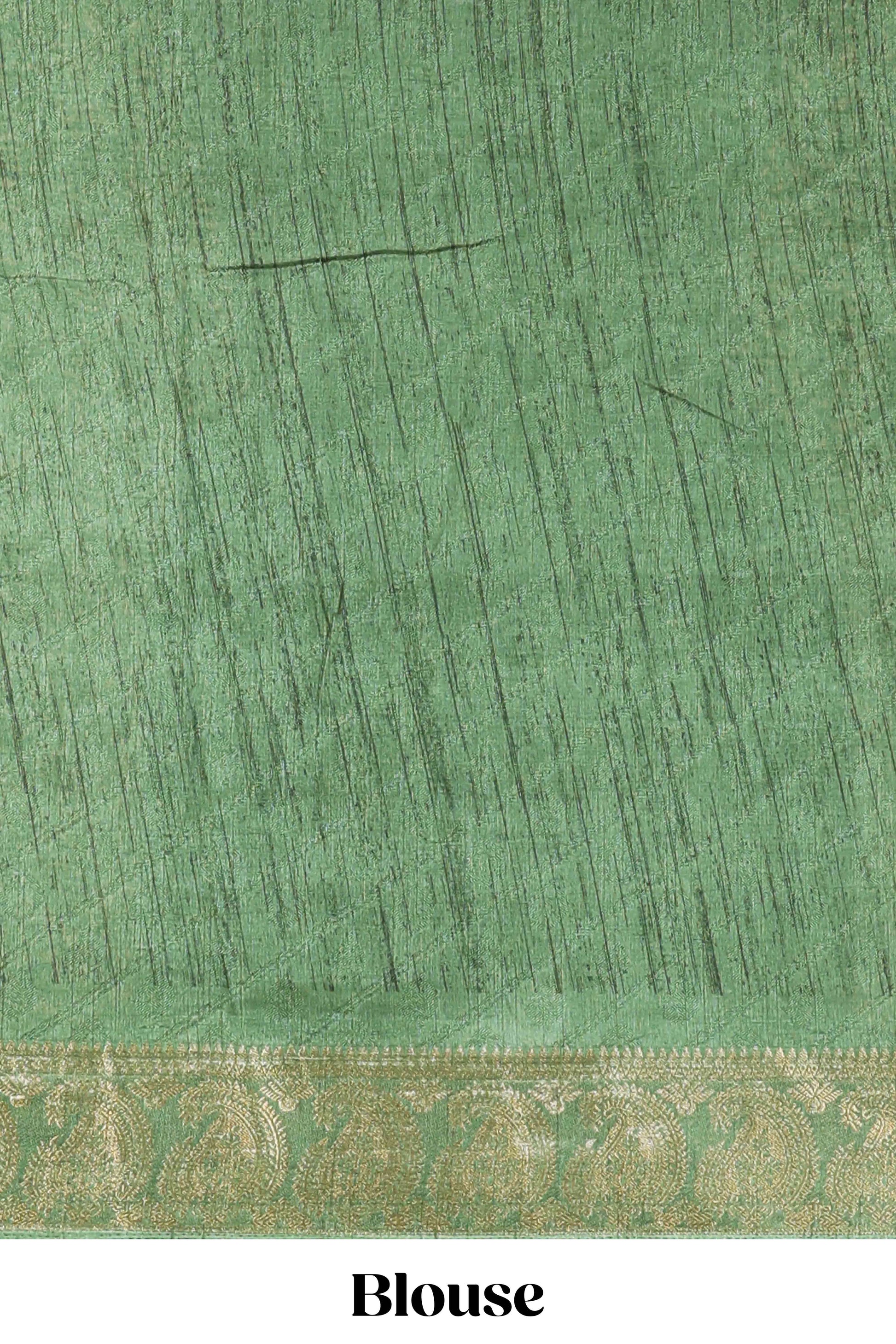 Cream floral design semi dola silk saree with contrast green zari border an blouse