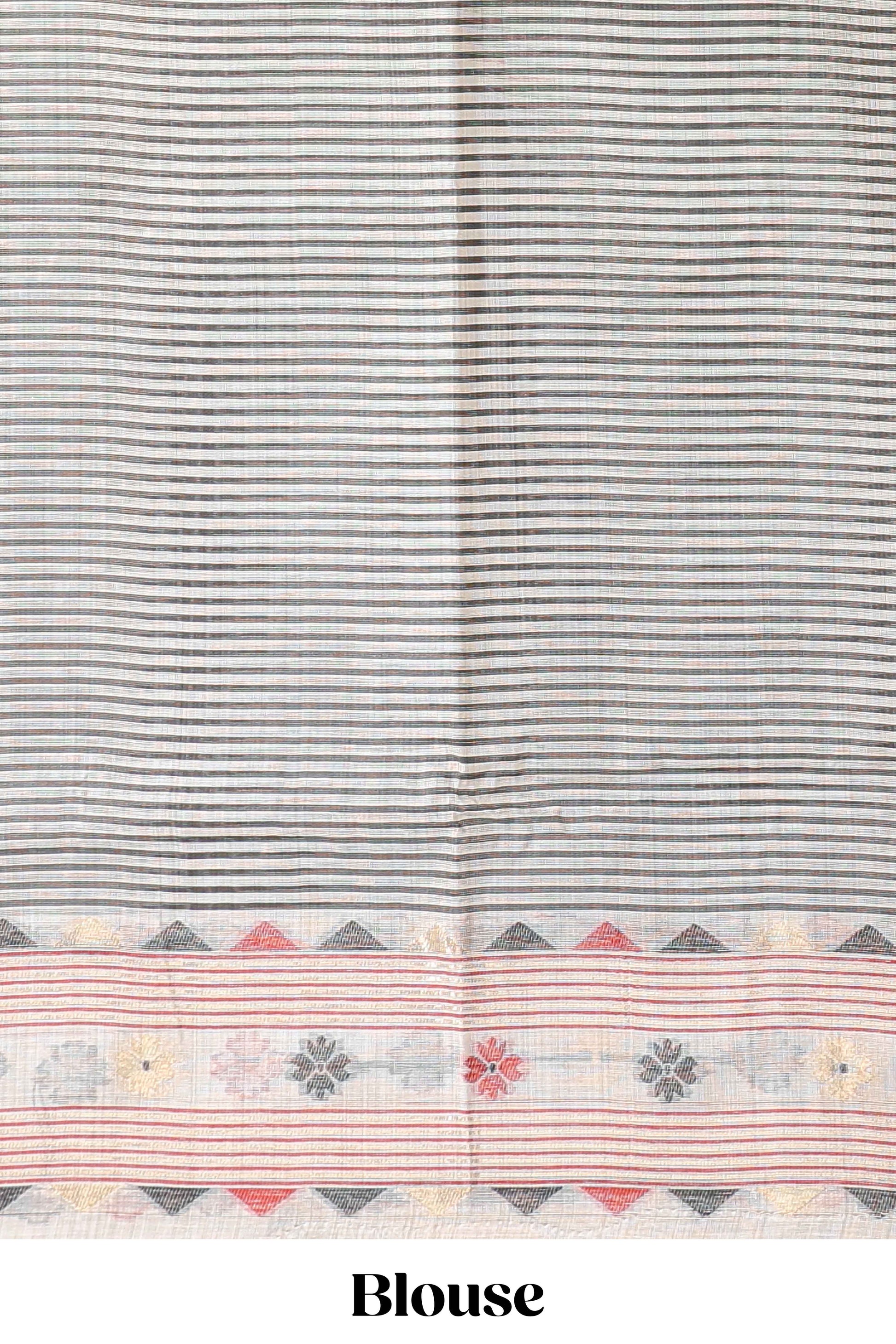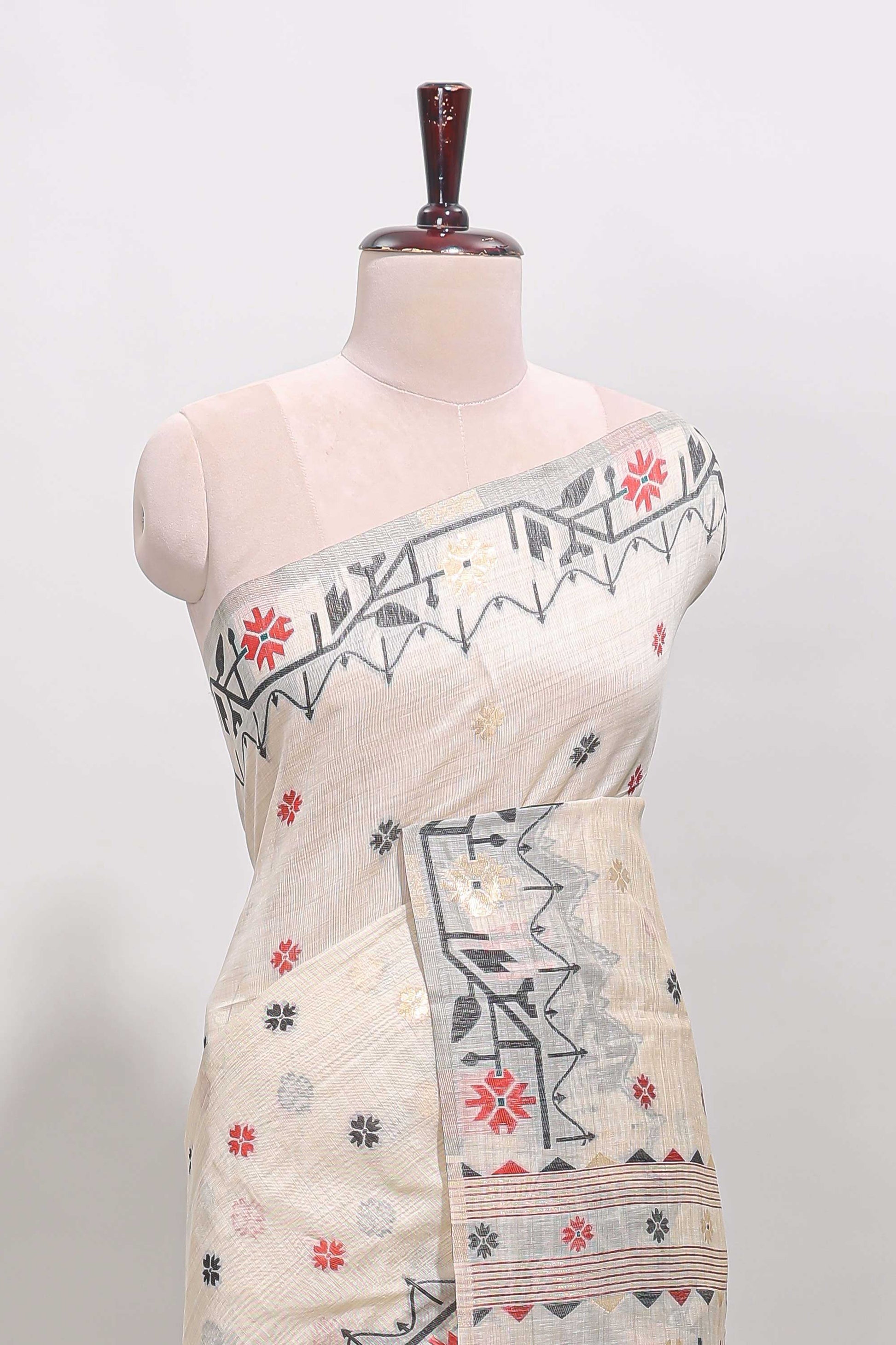 Cream floral motifs munga cotton saree with self border matching blouse