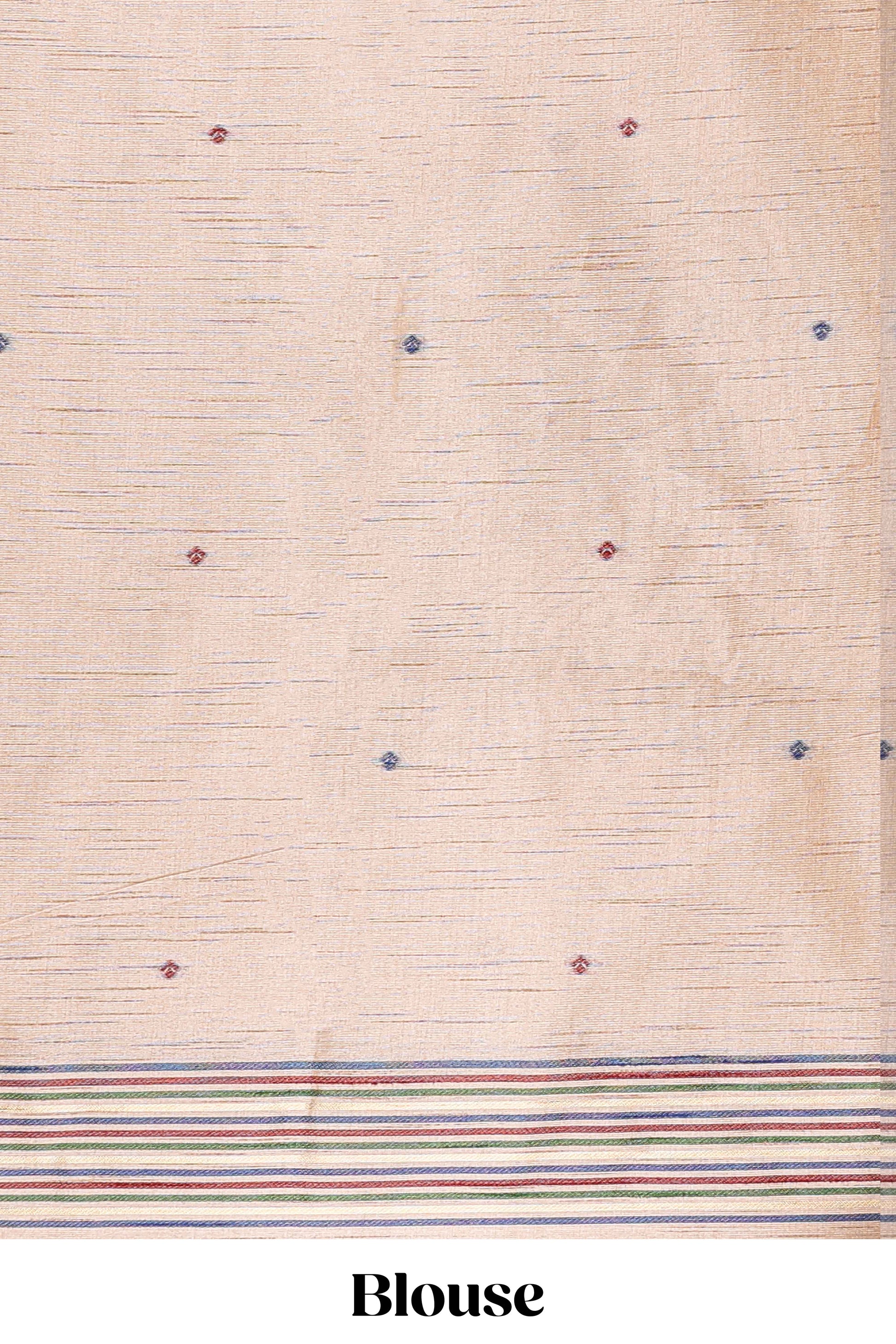Cream munga cotton thread butta saree with blue jamdhani style border and floral thread weaving blouse