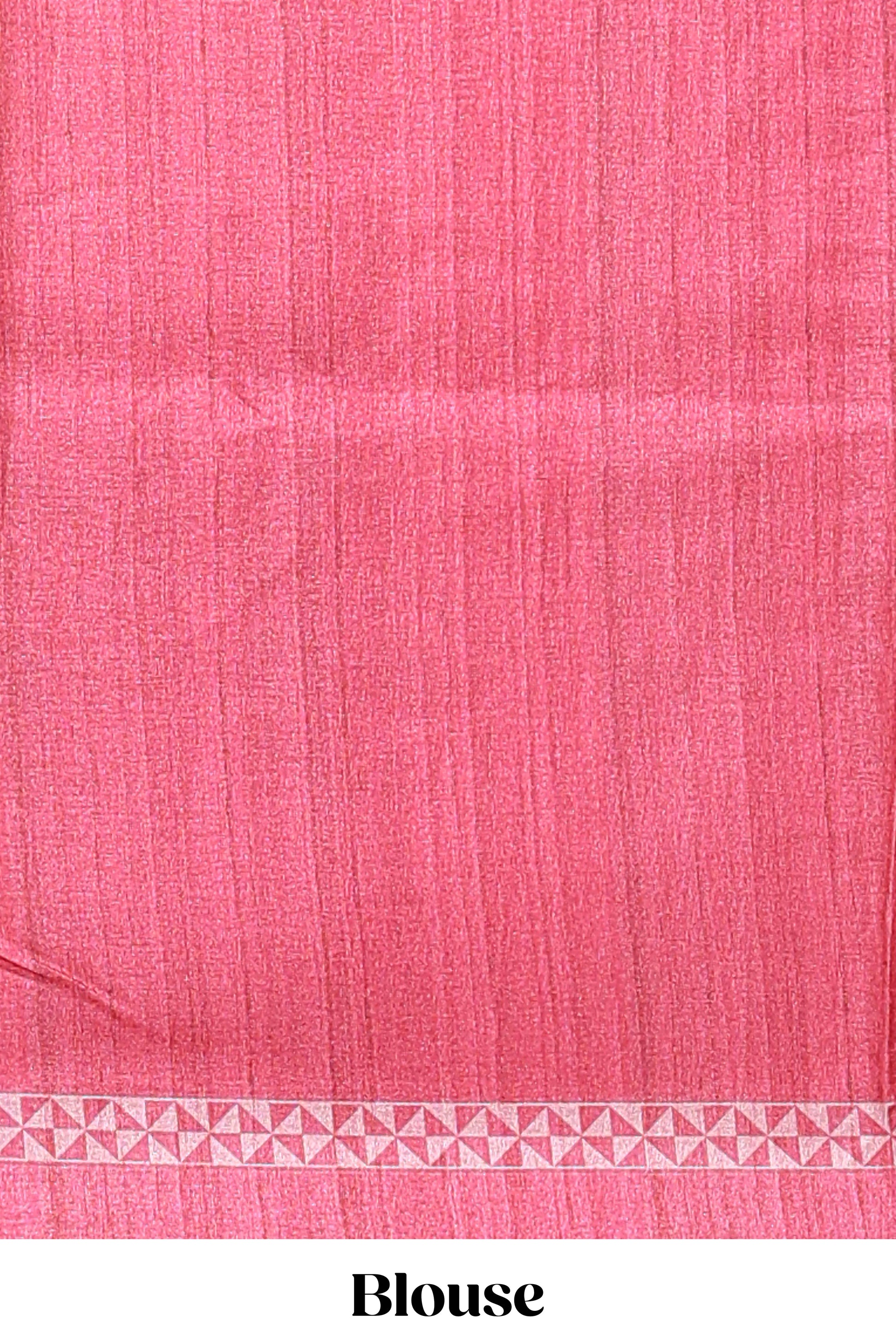Cream peacock motifs tussar saree with contrast rani pink border and peacock printed pallu
