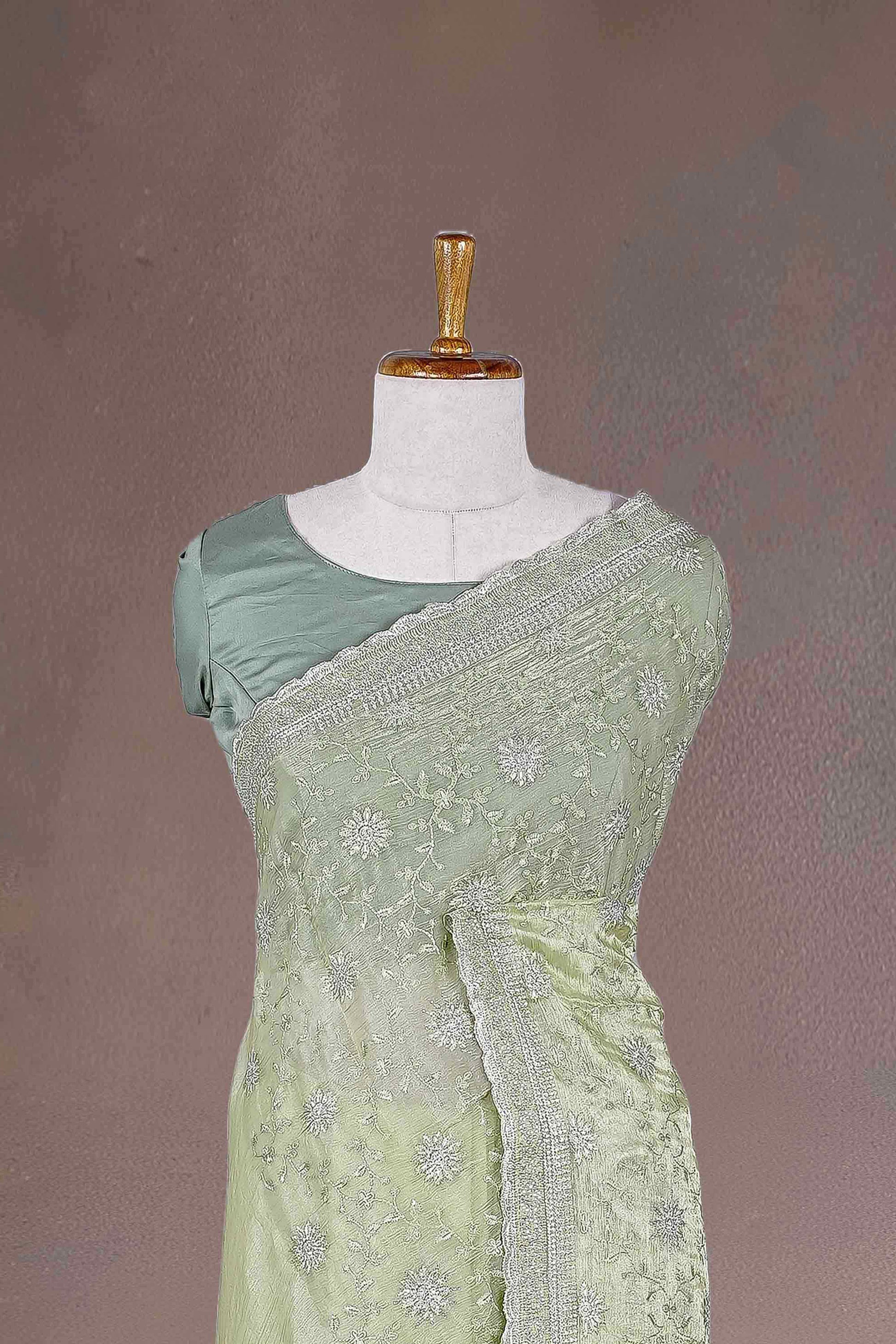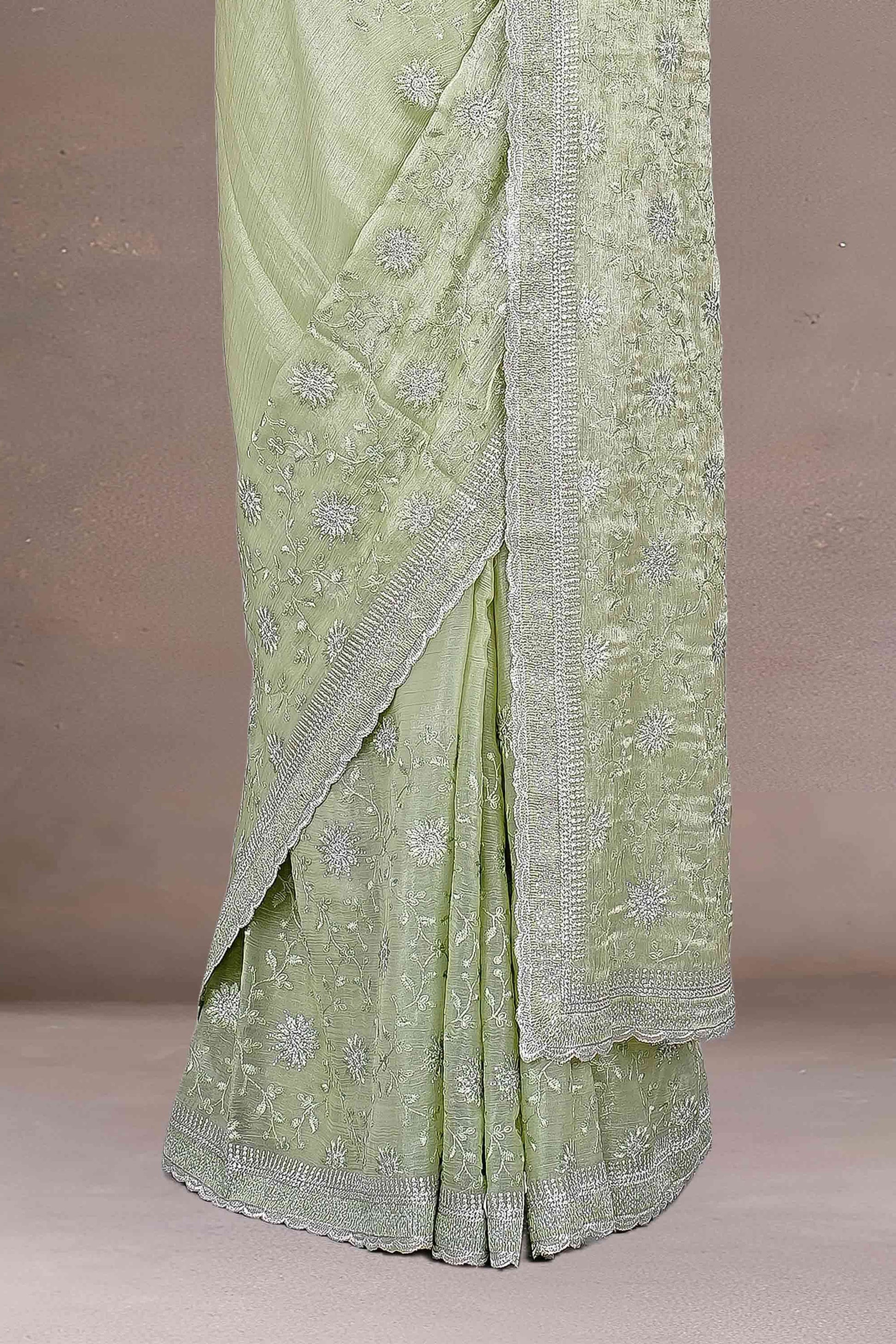 Fendi Chiffon Gold Thread Embroidery With Swarovski Stone Saree