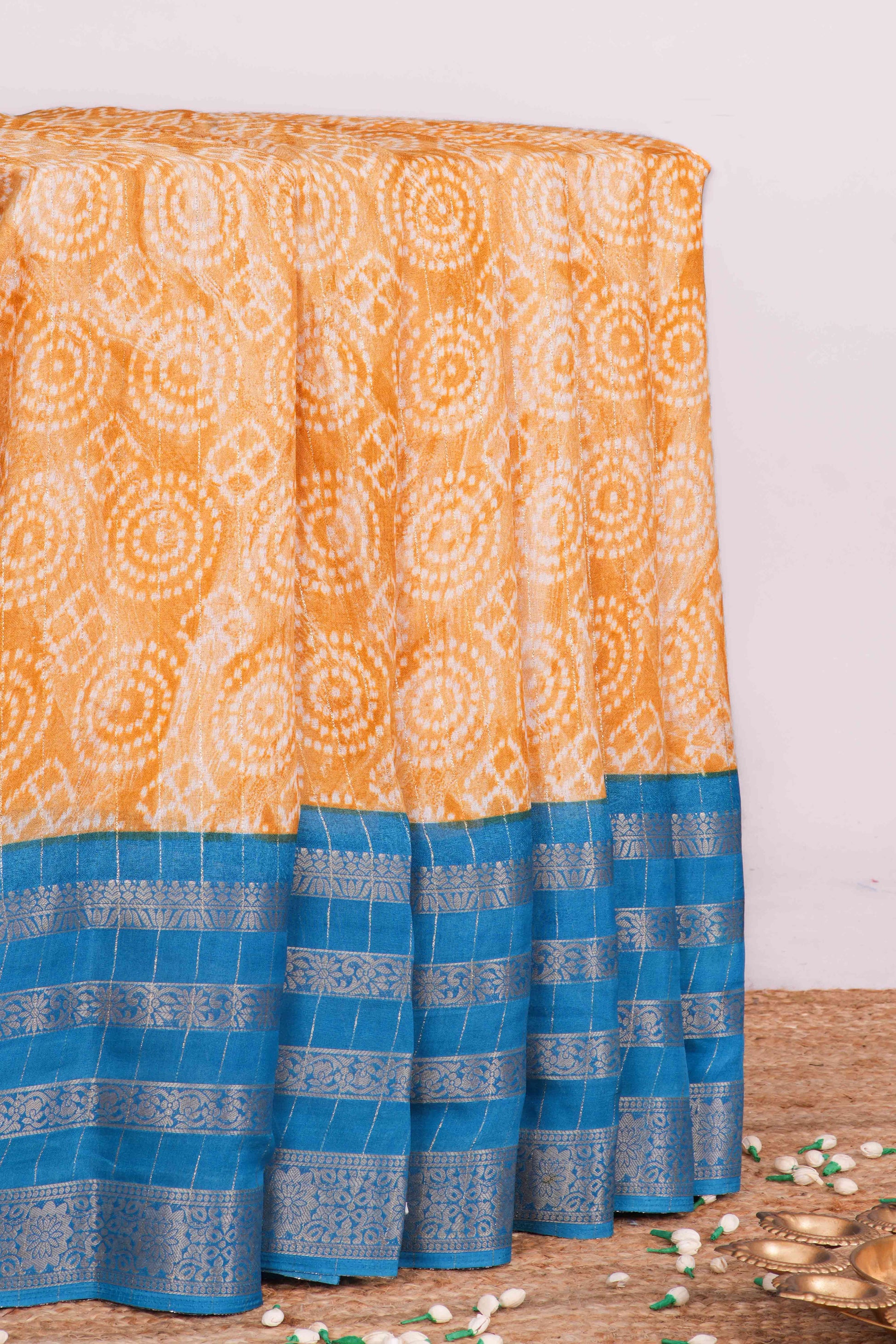 Yellow Soft Dola Silk Ikkat Print With Contrast Floral Print Pallu