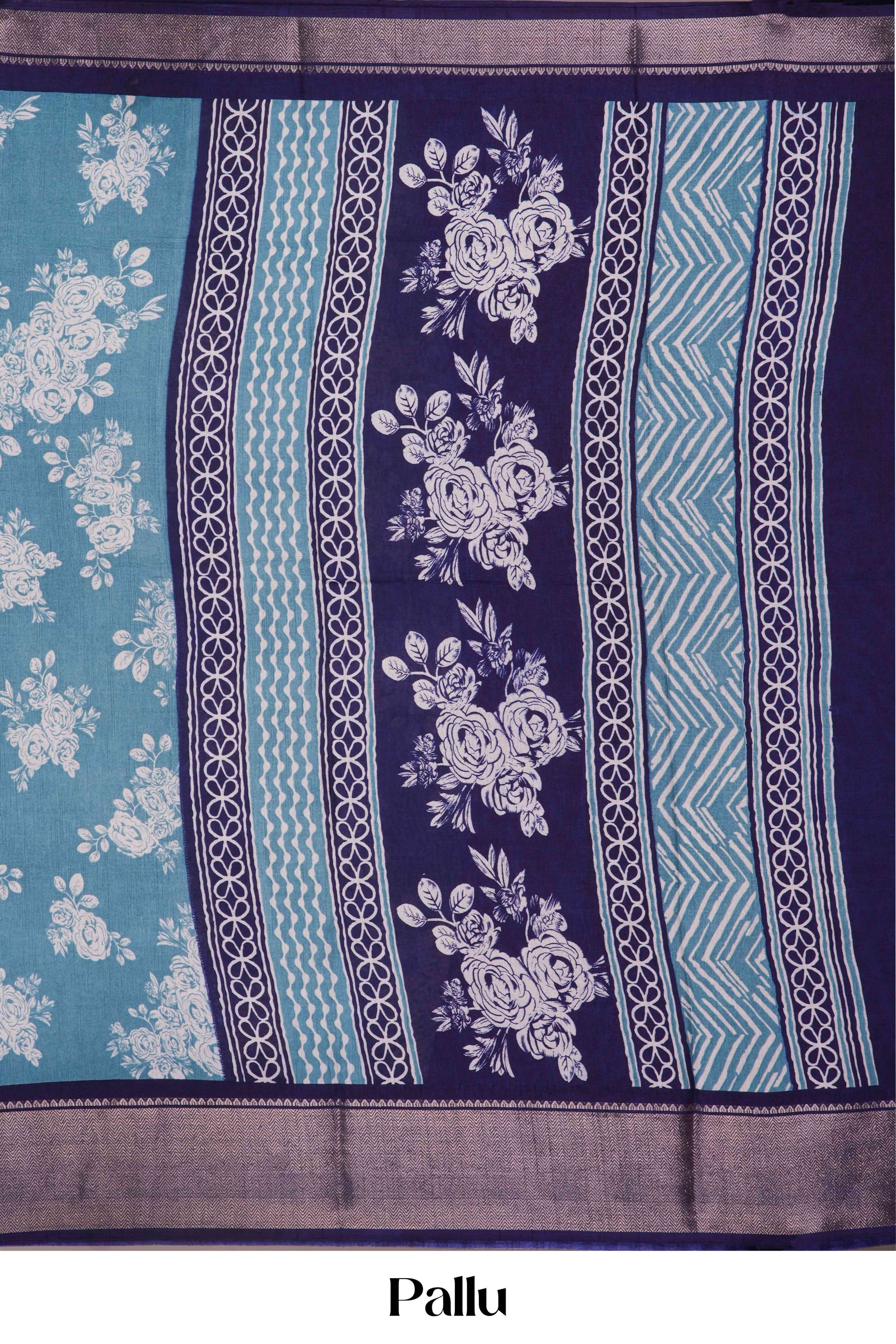 Blue Soft Dola Silk Saree With Printed & Contrast Jacquard Border