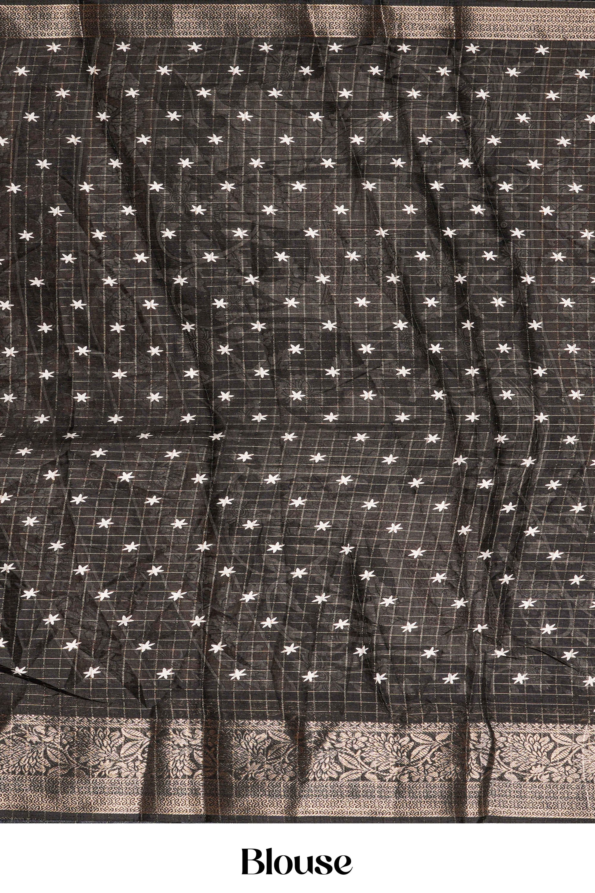 Dola Silk Saree Pen Kalamkari Print Across The Body With Contrast Floral Zari Weaving Border Along With Zari Stripes Blouse