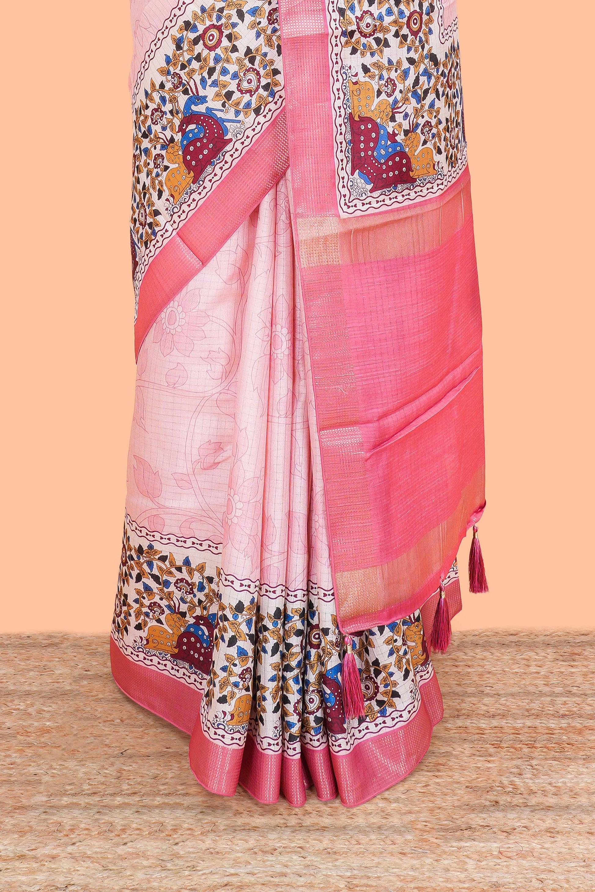 Peach Art Tussar Saree Floral Design Across Body Along With Blouse