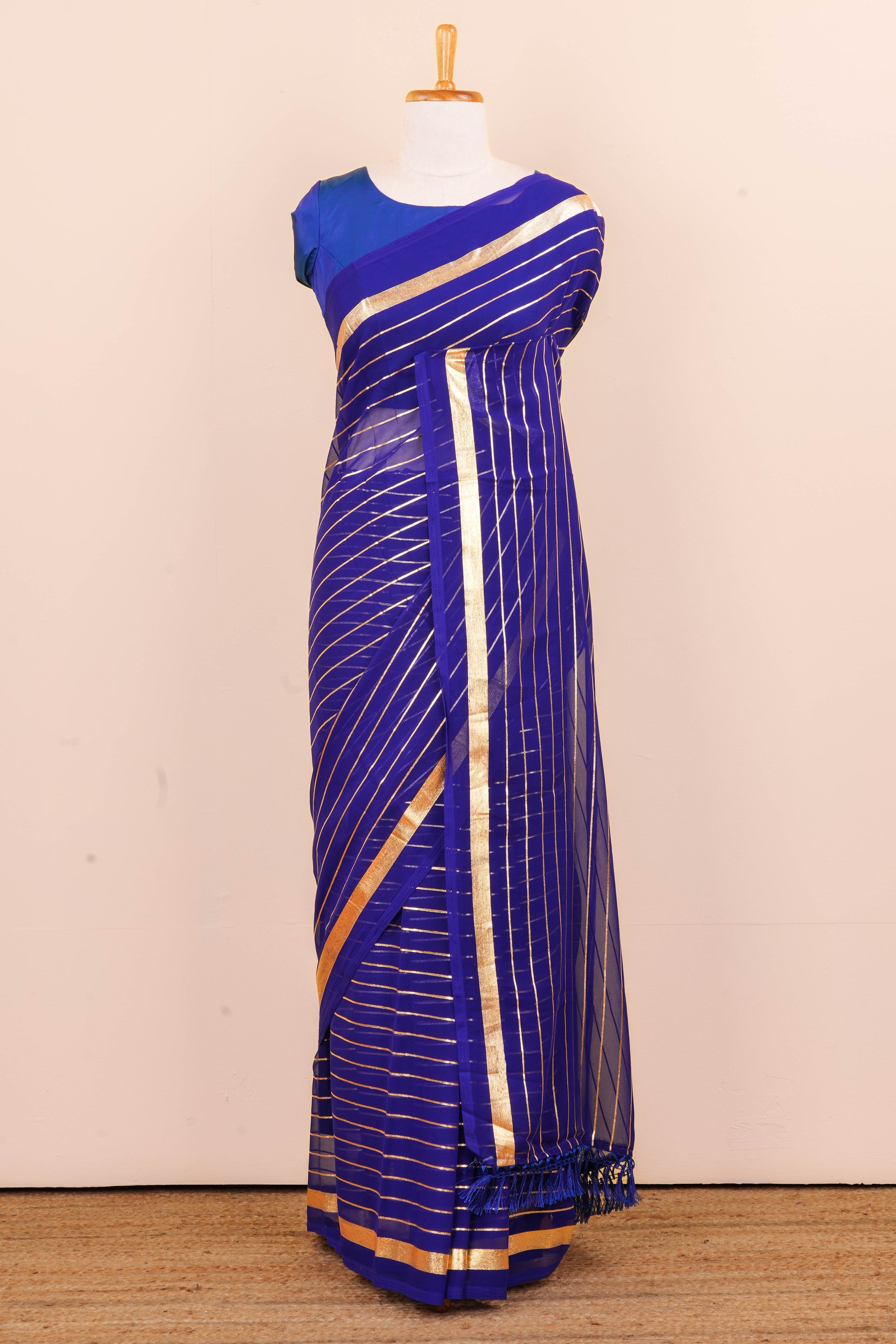 Royal Blue Georgette Leheriya With Gold Foil