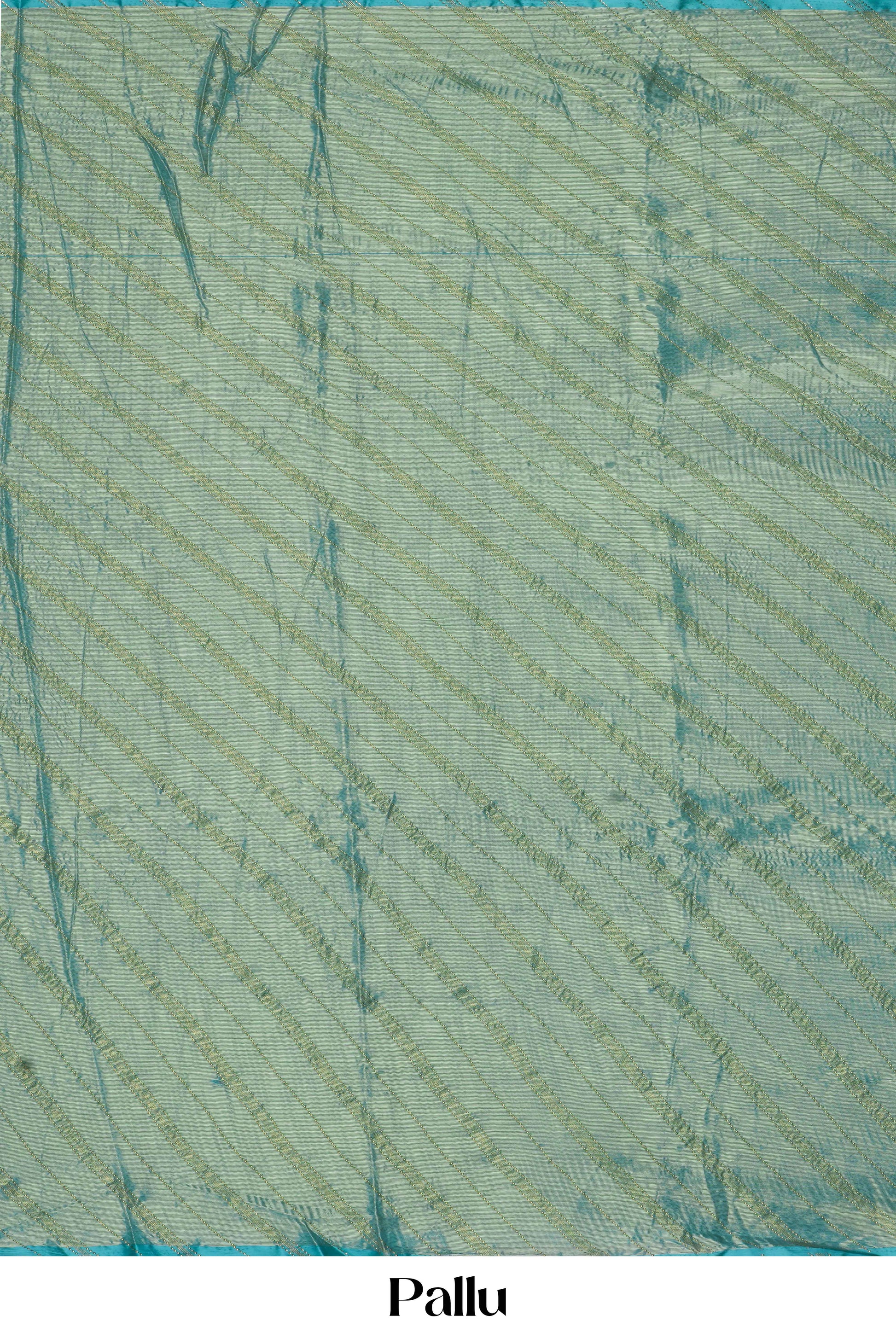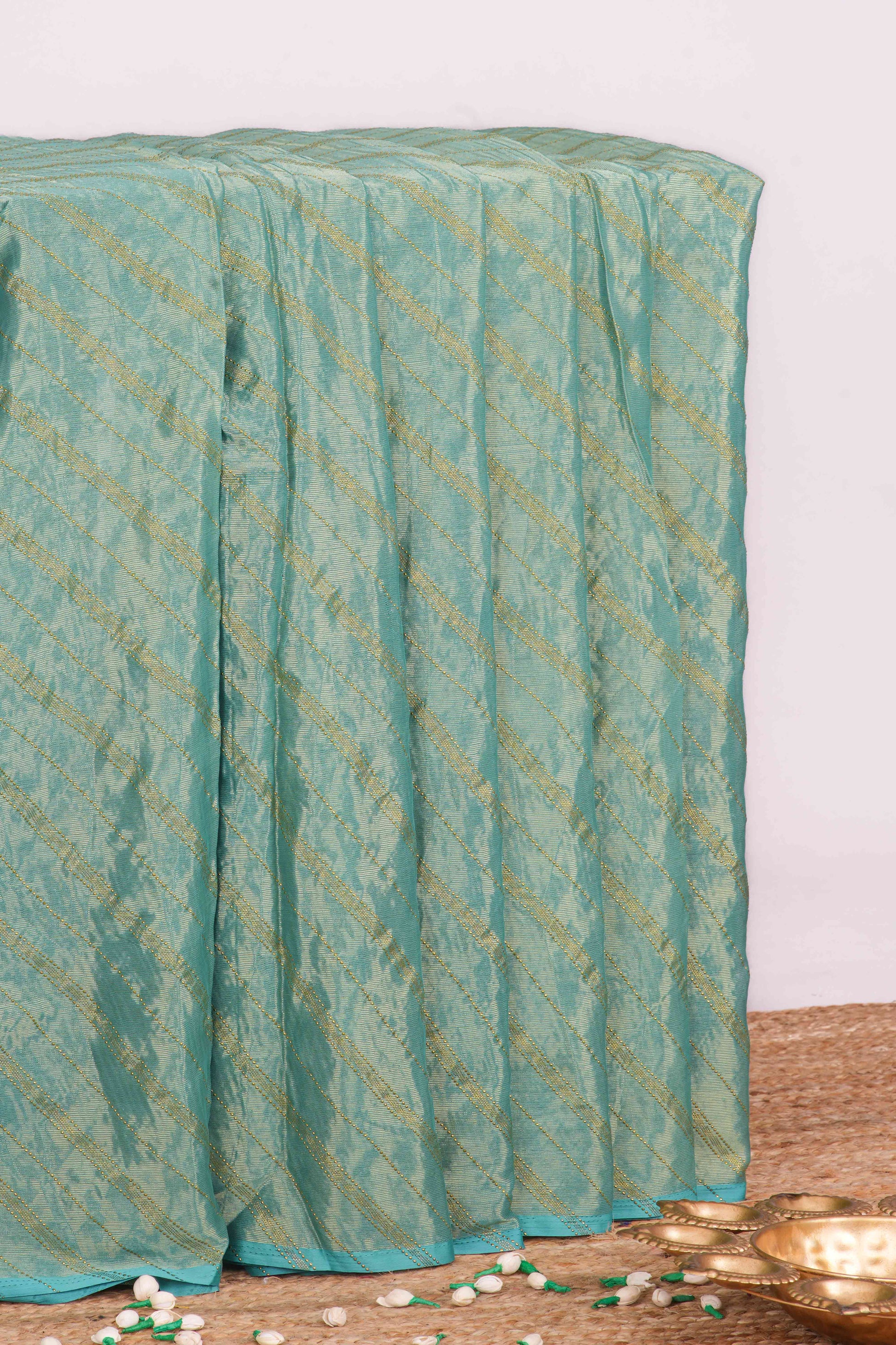 Green Brasso Georgette Saree Gold Stripes Design