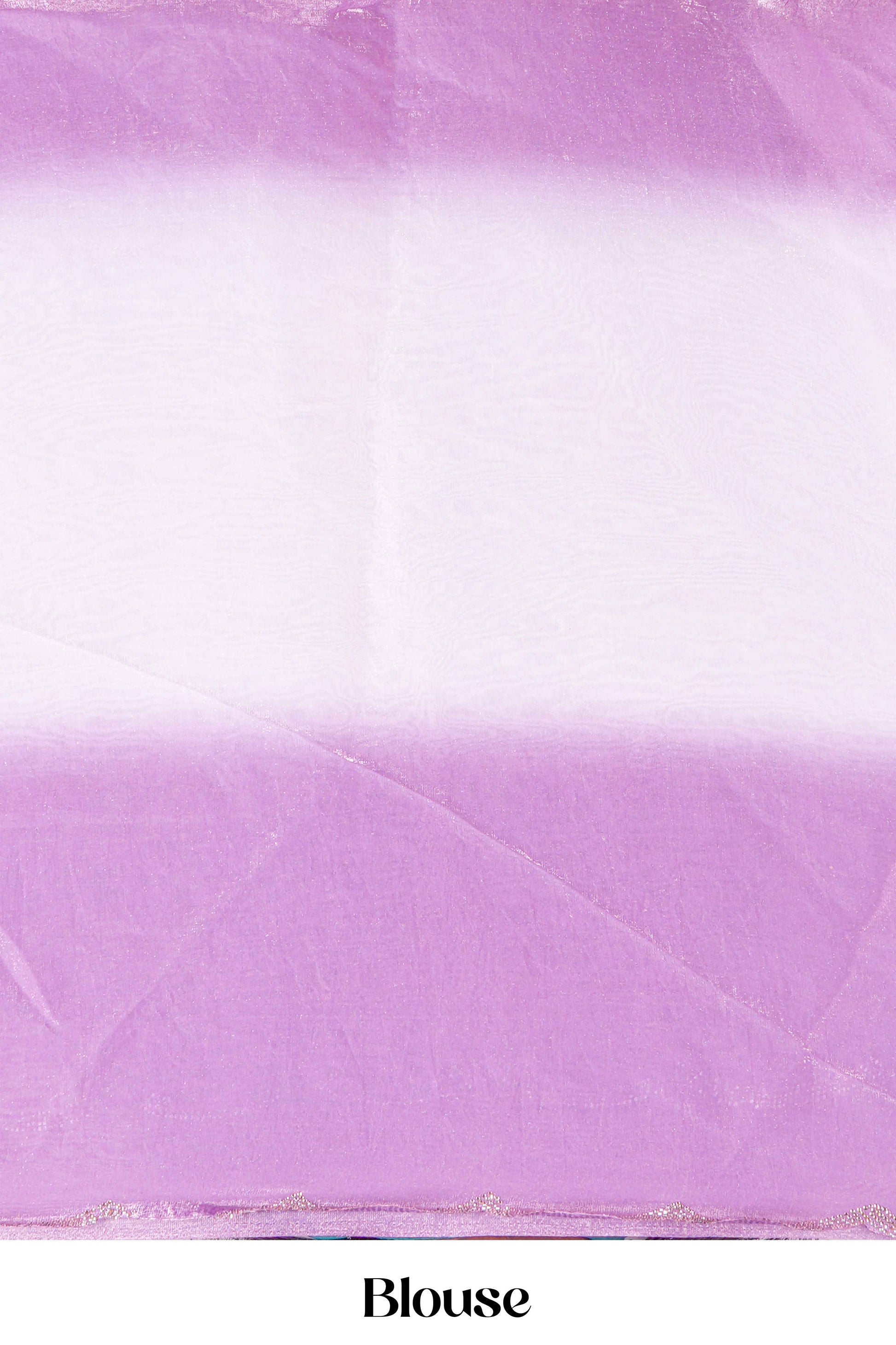 White & Lavender Fendi Chiffon Saree With Stone Work