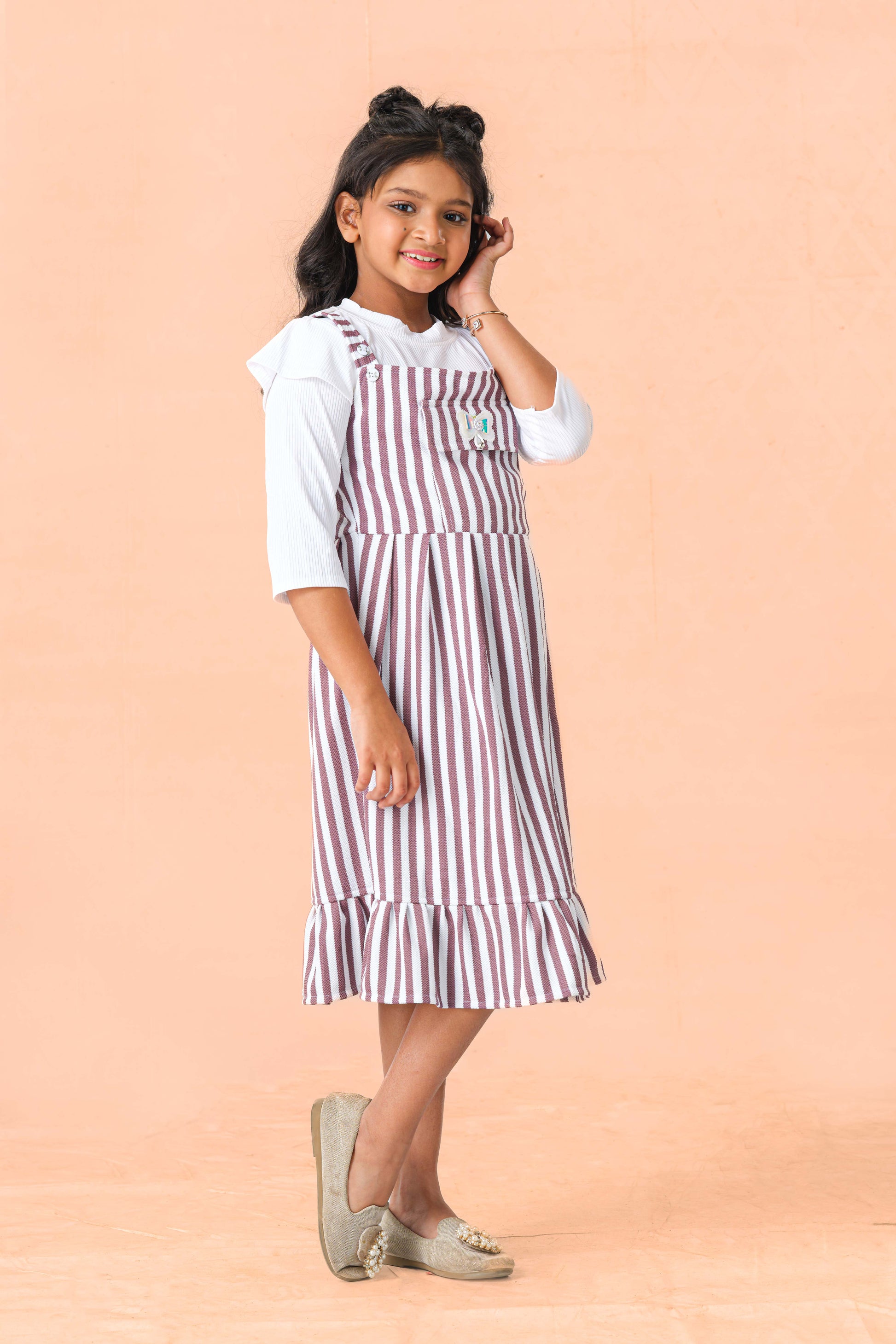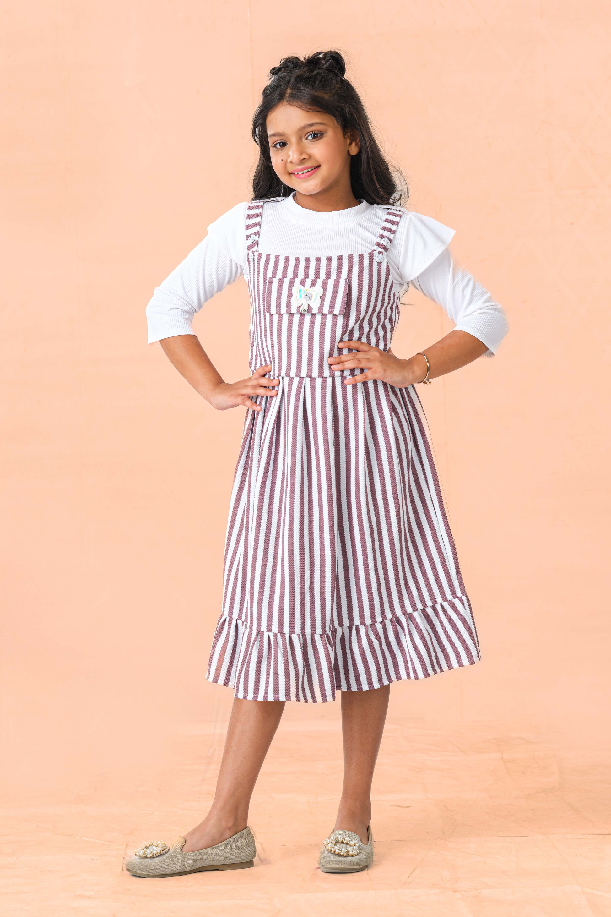 Western Wear Frock Maroon & White Vertical Stripes All-Over
