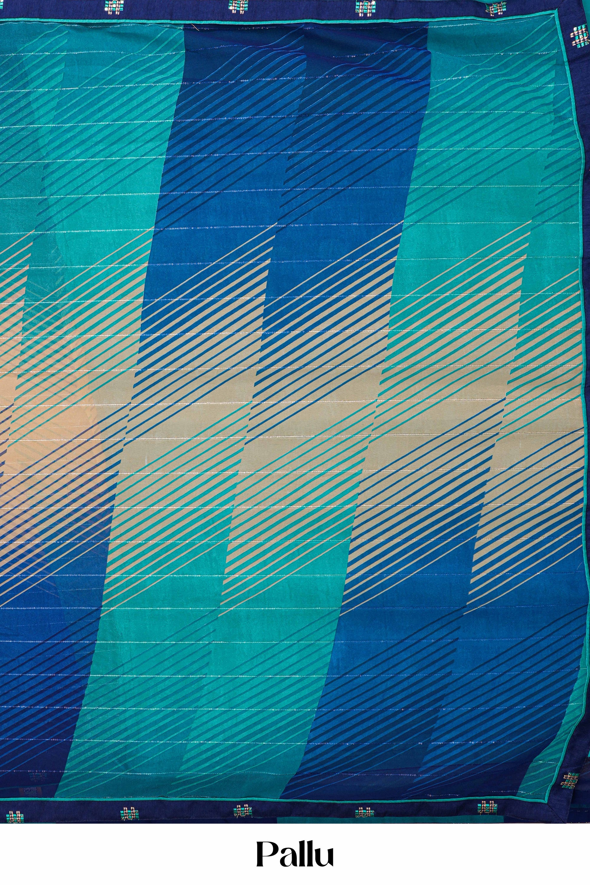Sea Green Georgette Light Weight Saree All- Over Detailing Geometric Pattern Along With Blouse