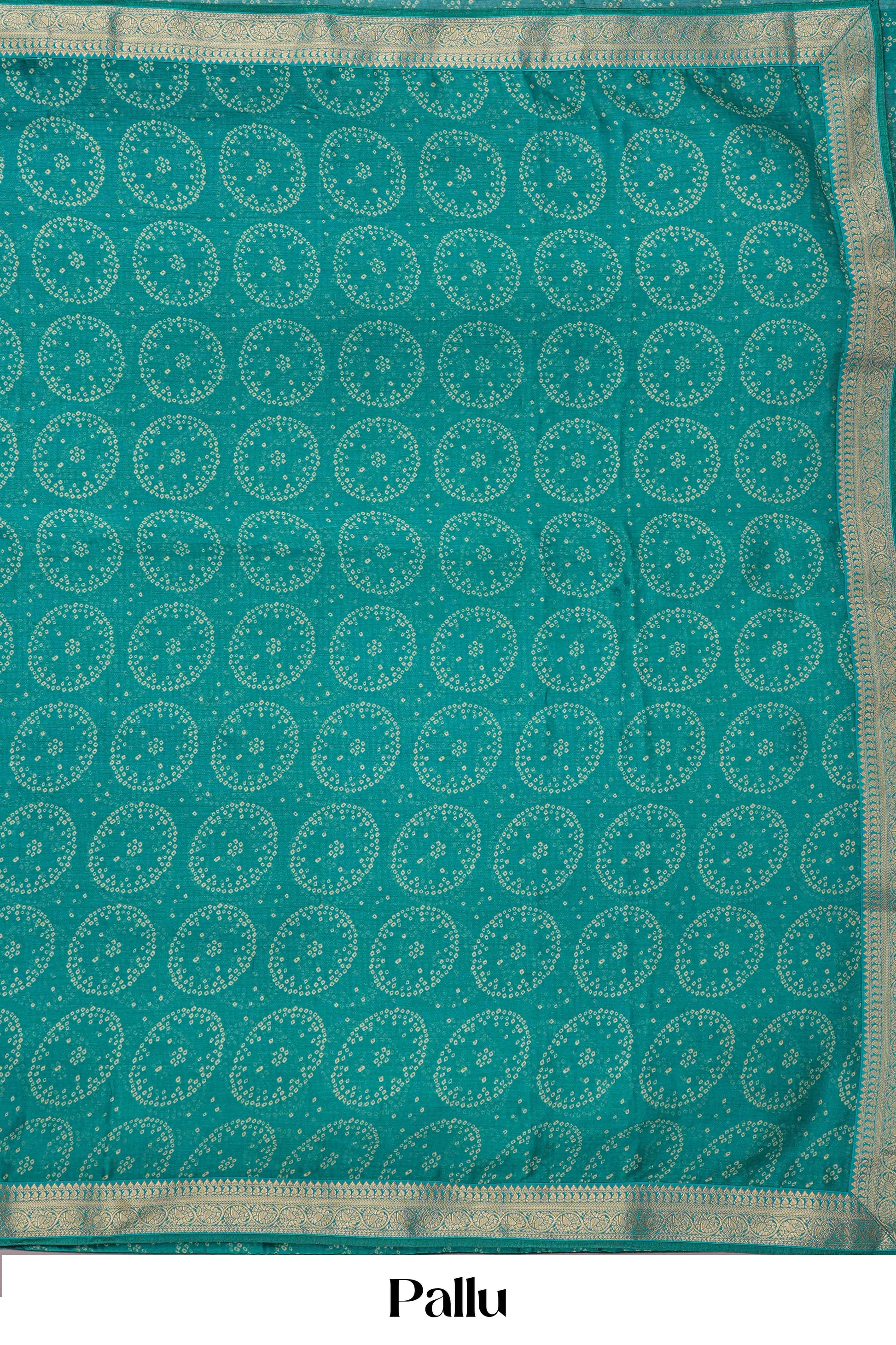 Green Georgette Bhandani Print With Gold Zari Border