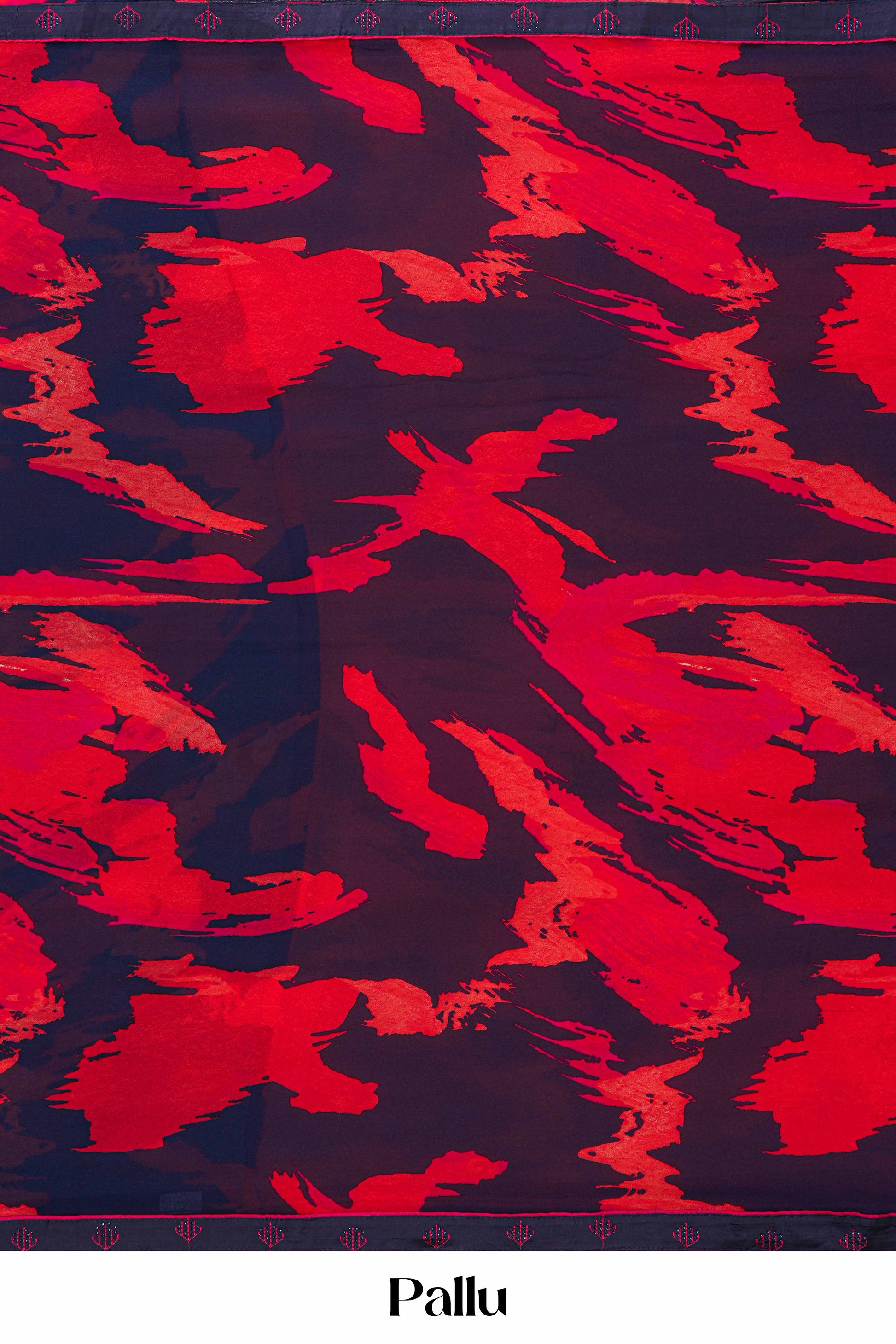 Navy Blue Georgette Saree Abstract Patterns In Bright Red Spread All- Over Body & Piping Border Along With Contrast Blouse