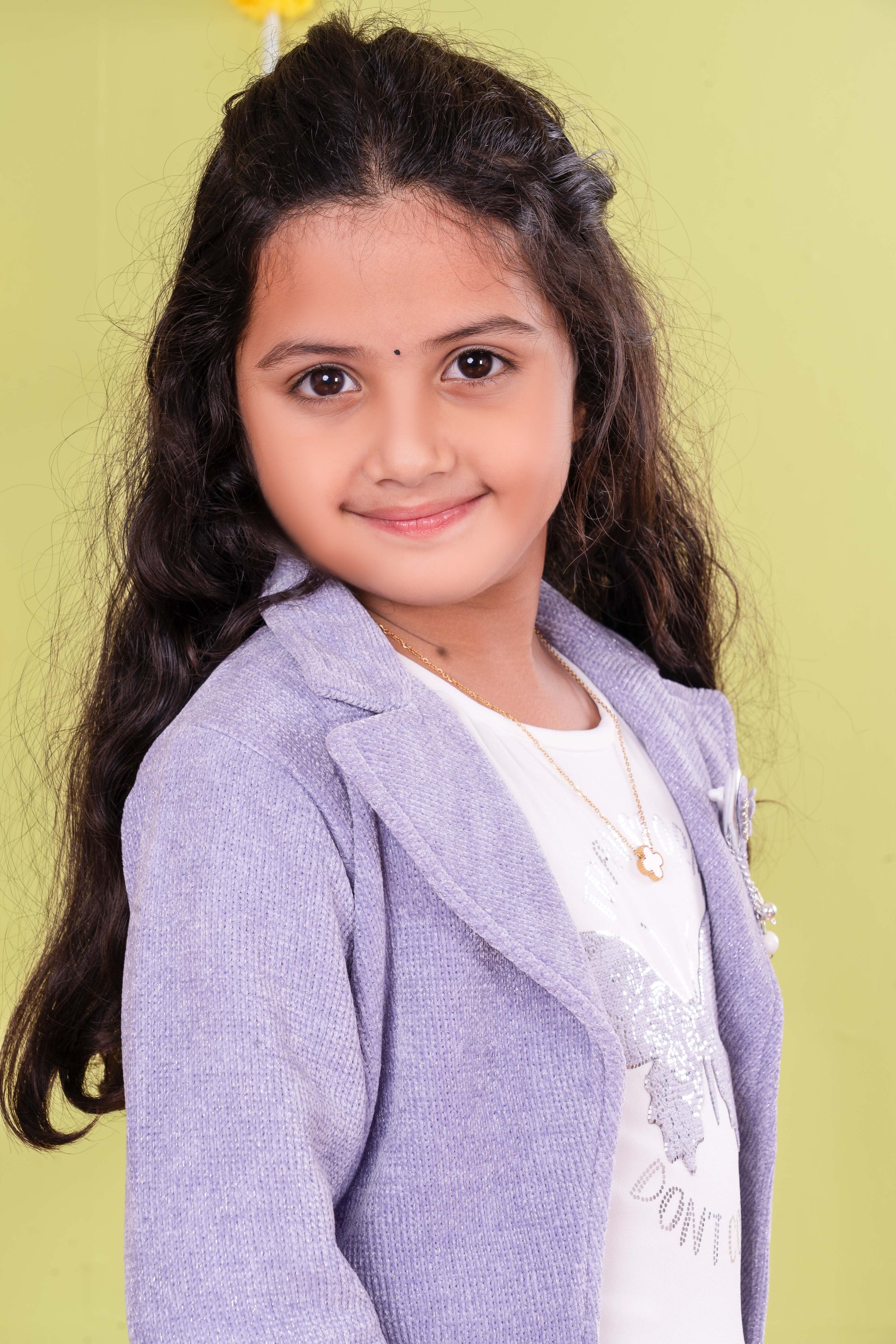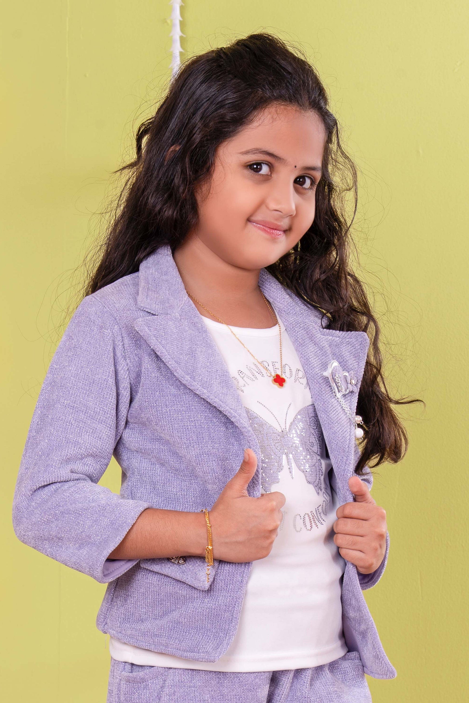 Girls Western Co-Ord Set White T-Shirt With Lavender Shrug & Pant