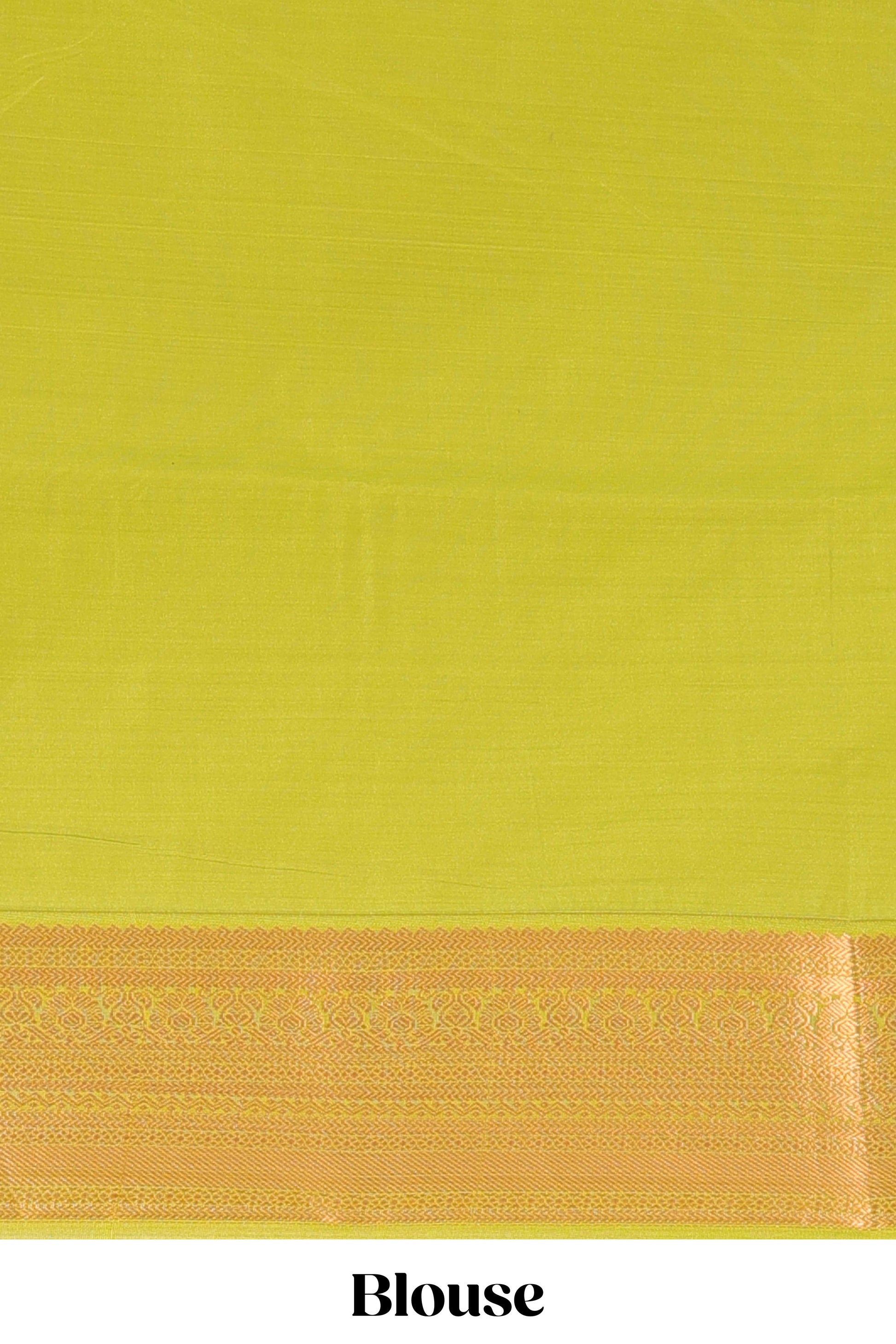 Green semi-soft silk saree featuring an all-over thousand butta design, paired with a contrasting border