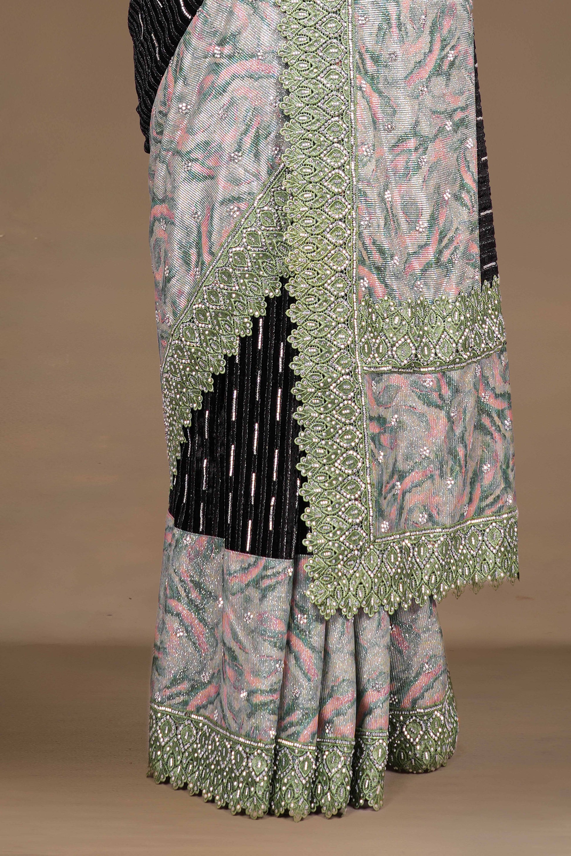 Imported Lycra Saree With Stone Work & Scallop Stone Work Border