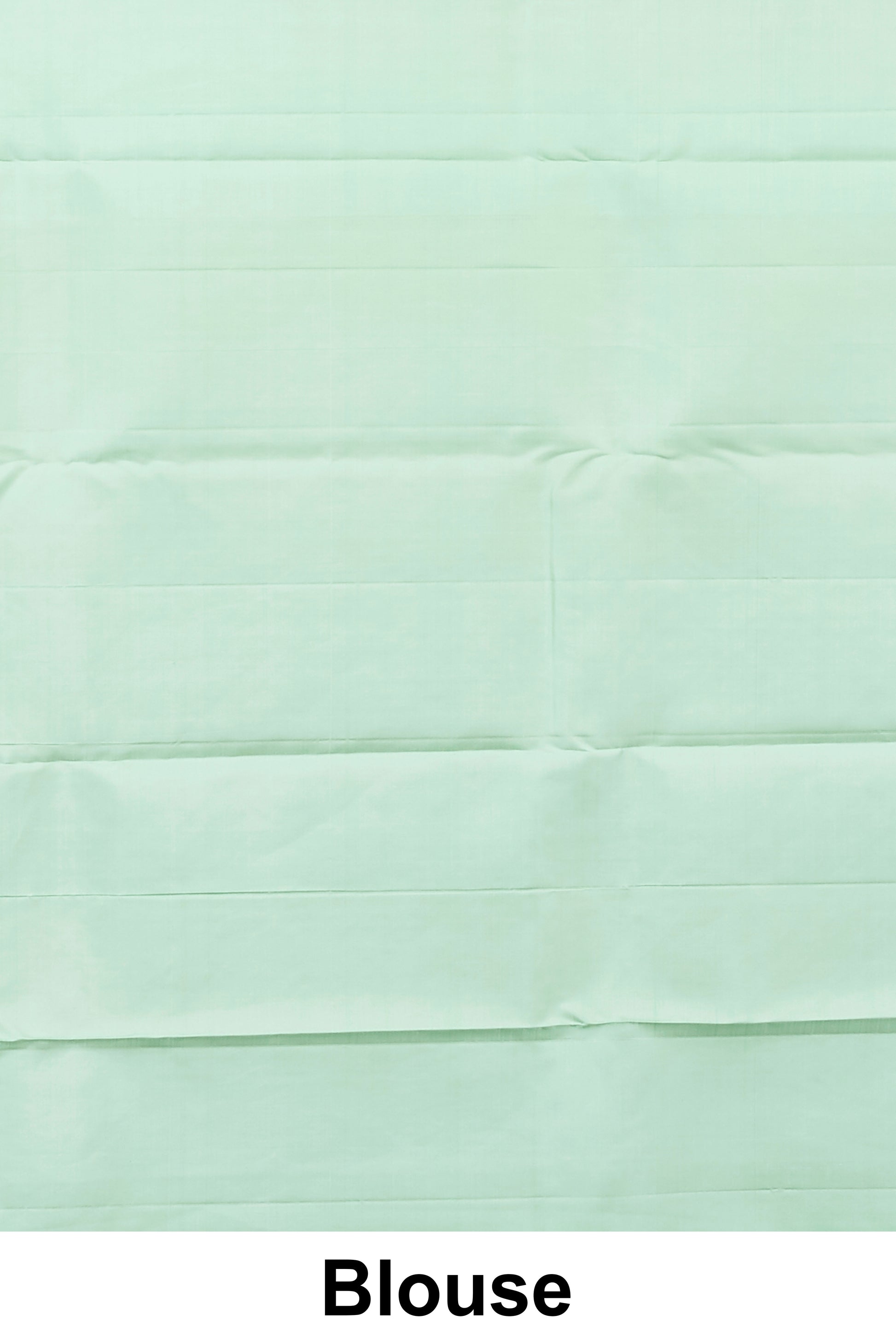 Sea Green & Dark Teal Checked Kanchipuram Borderless Pure Silk Saree with Zari Buttas