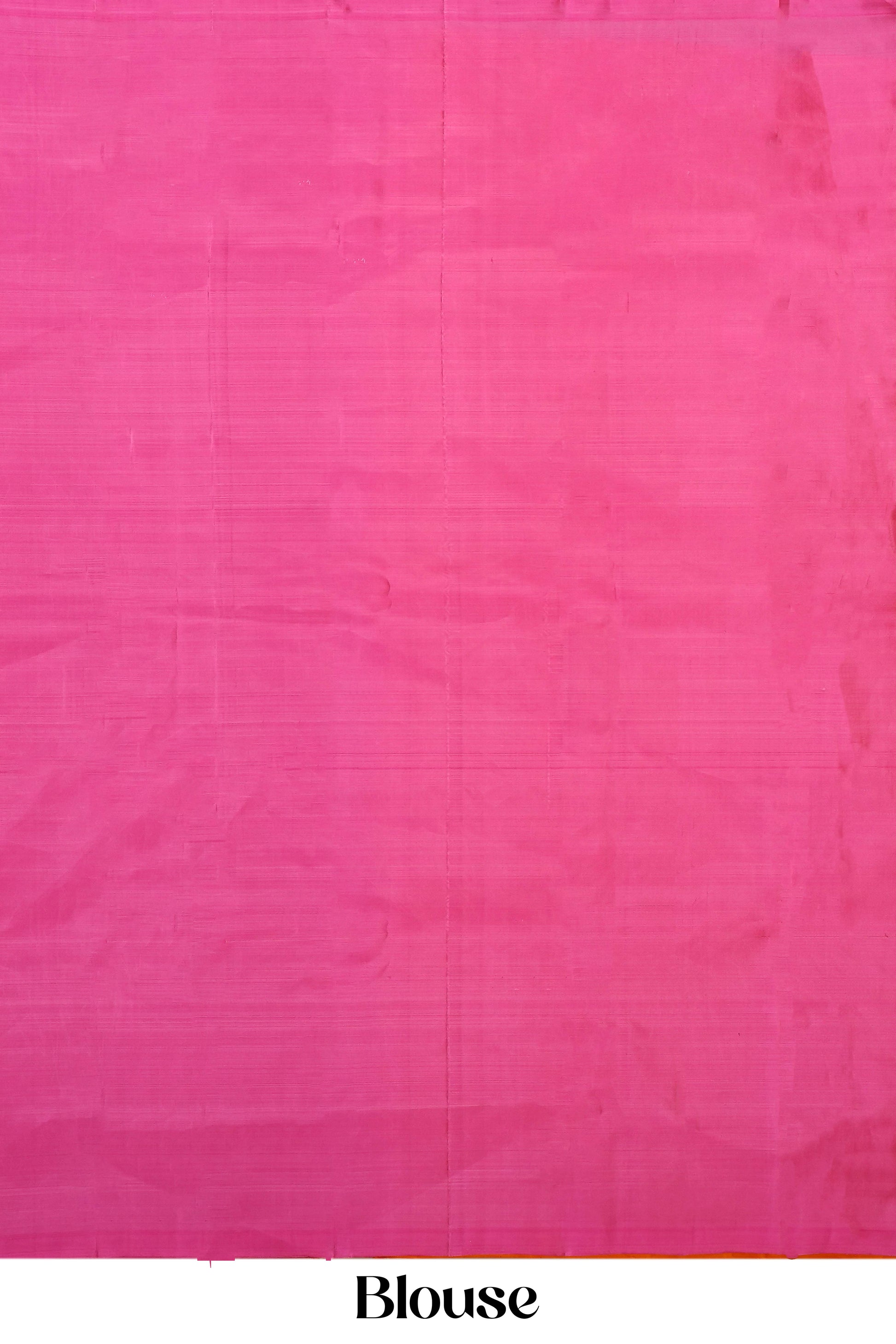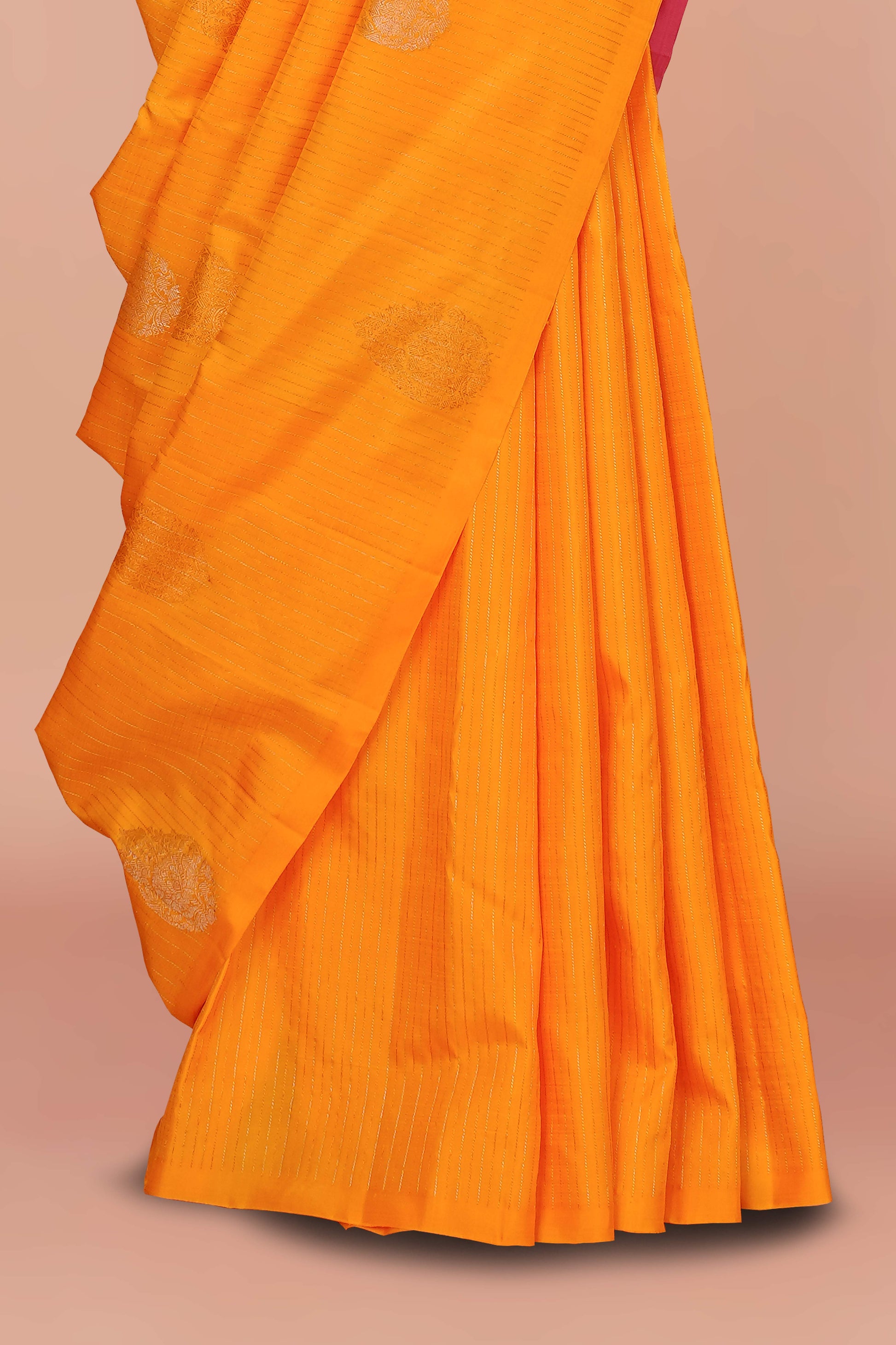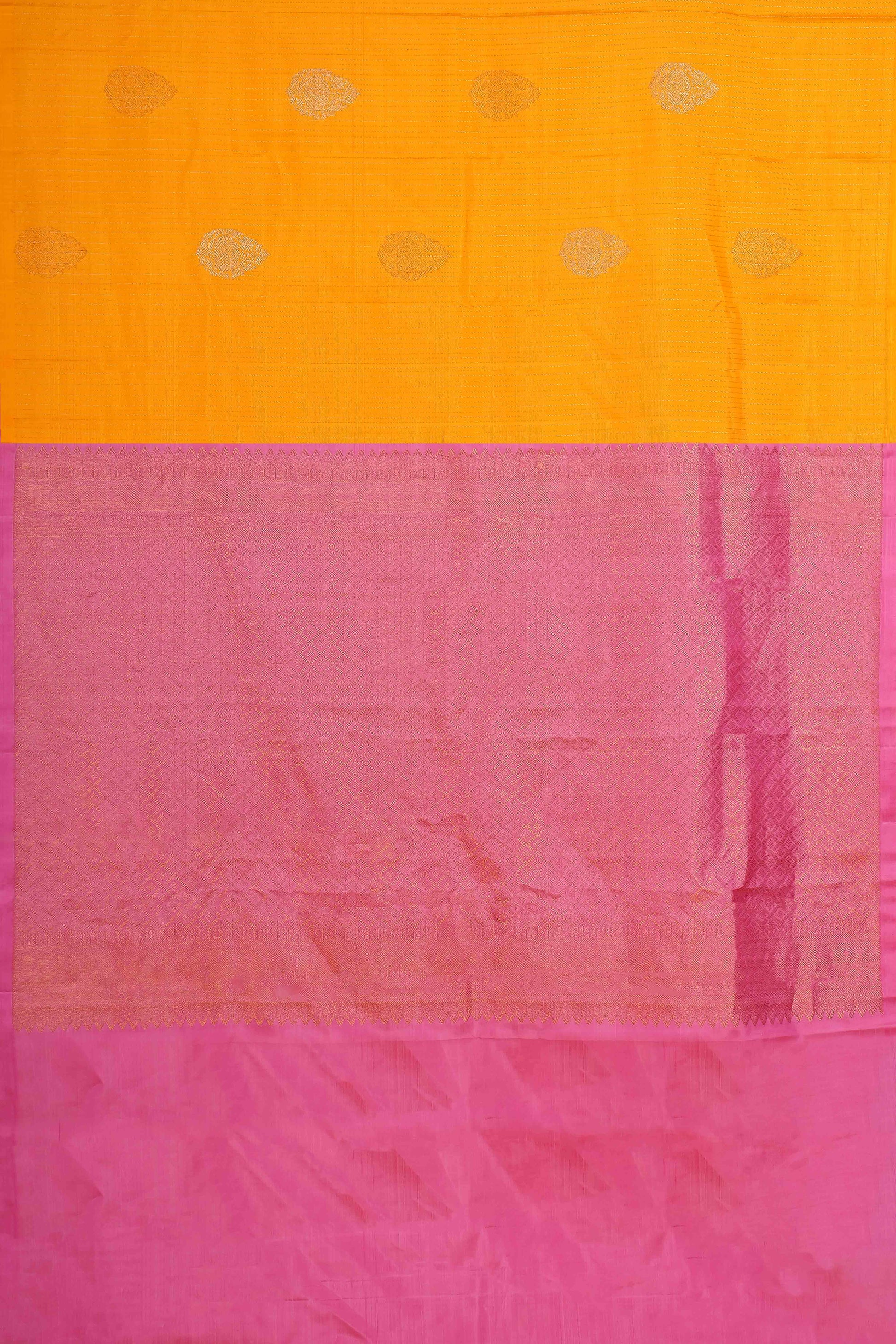 Bright Mustard Yellow & Pink Kanchipuram Pure Silk Saree with Gold Zari Buttas