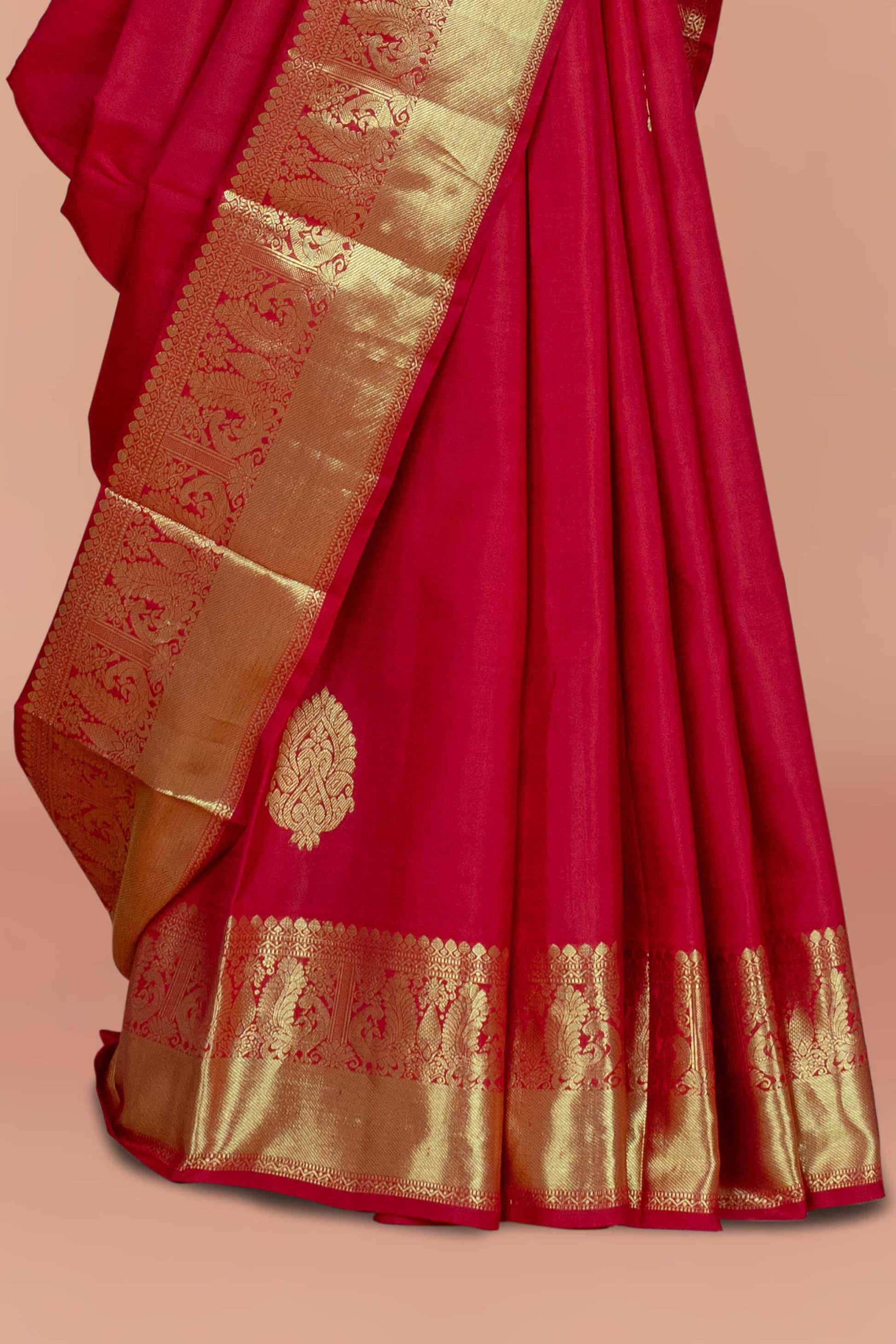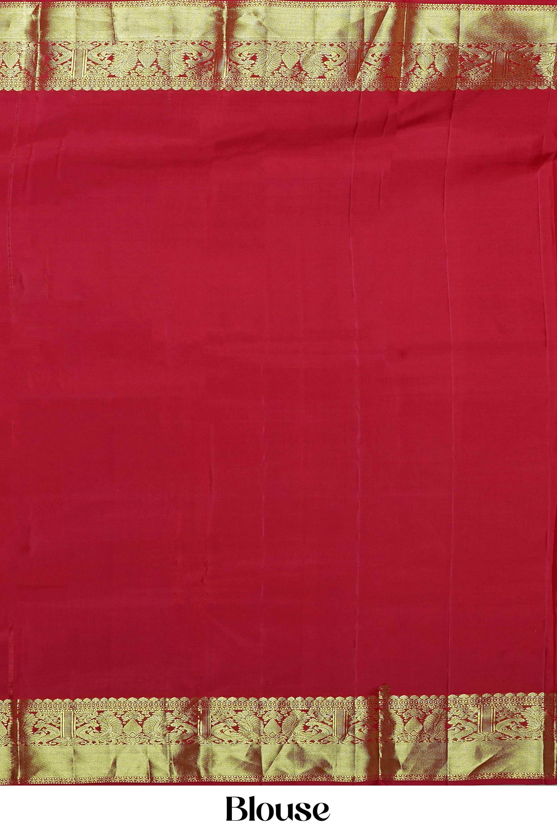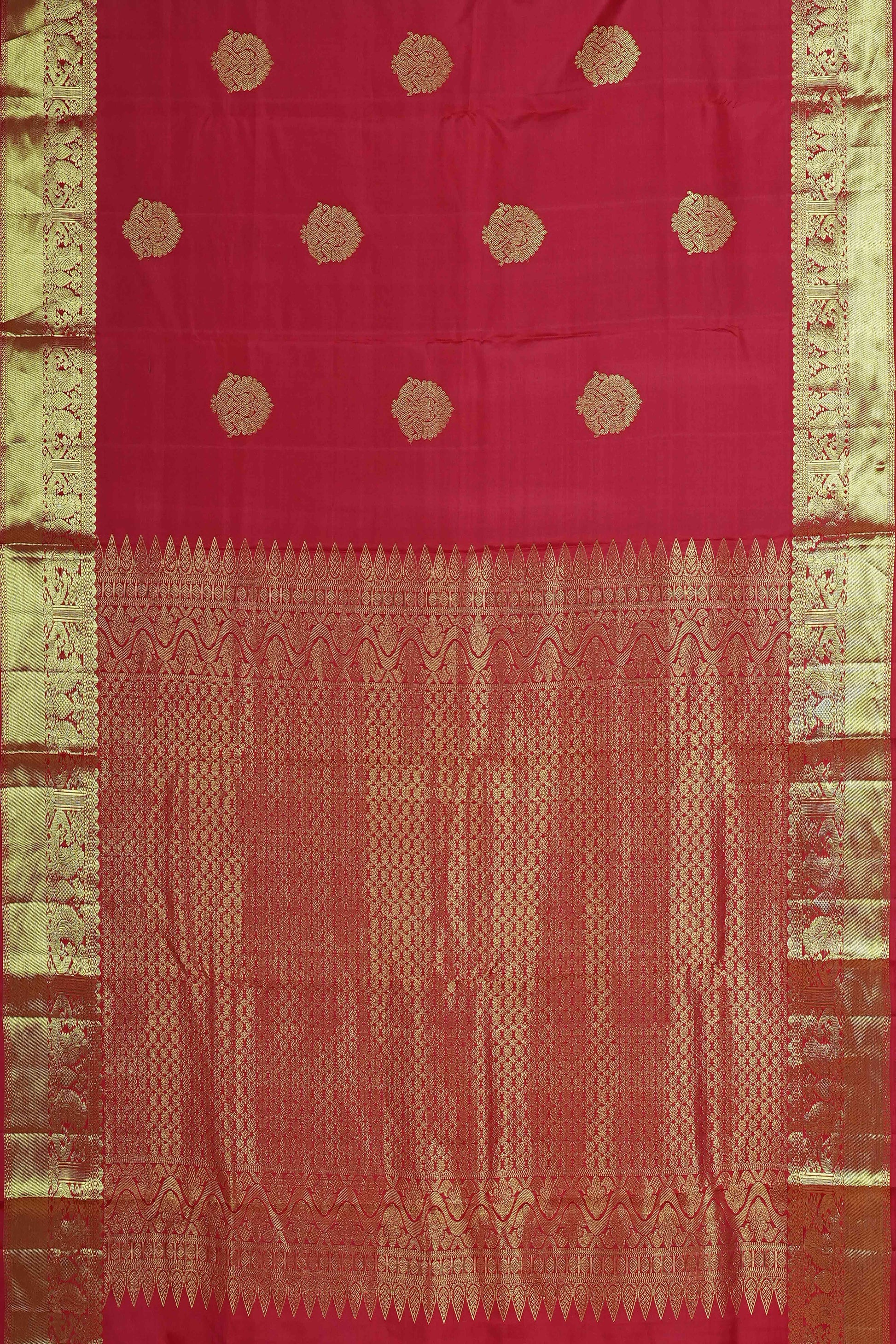 Crimson Red & Gold Self-Butta Kanchipuram Pure Silk Saree with Traditional Zari Border