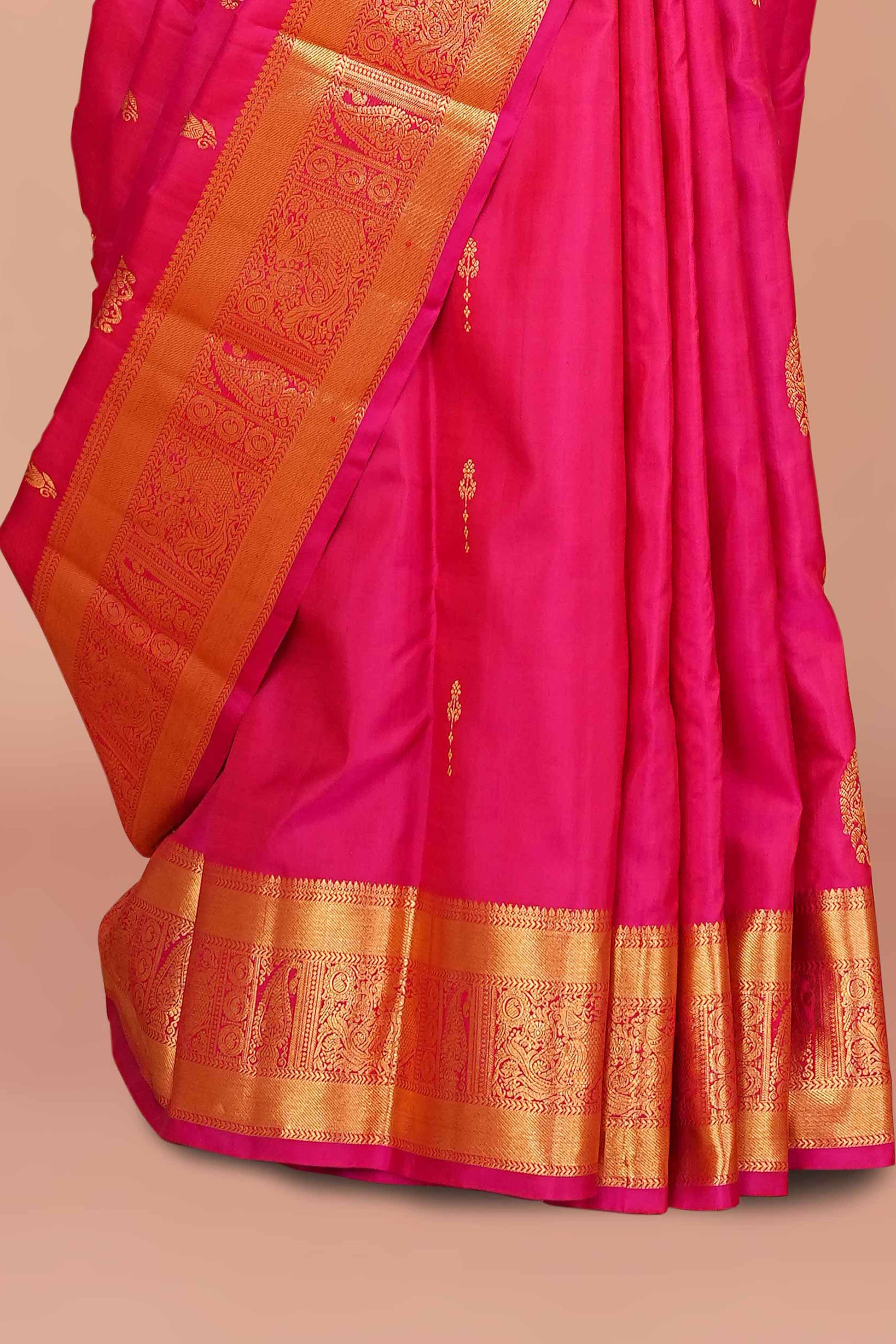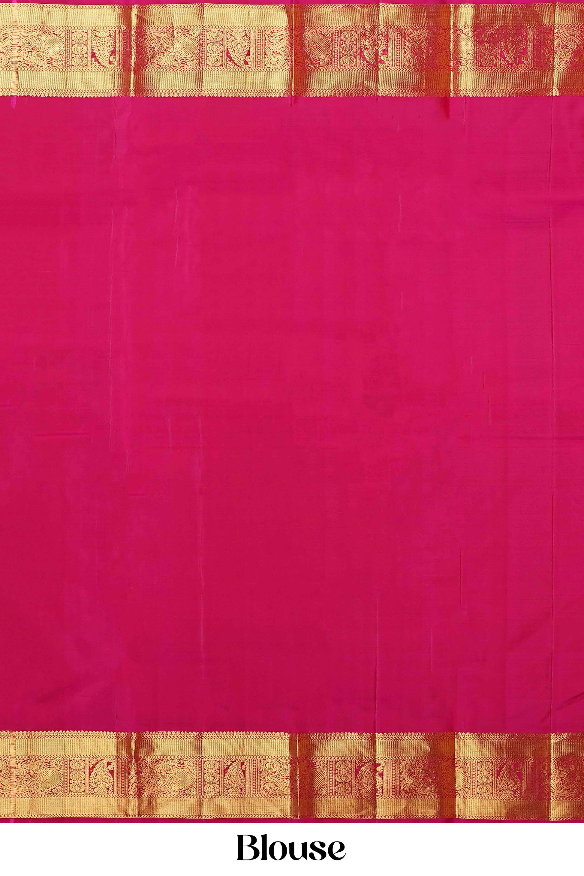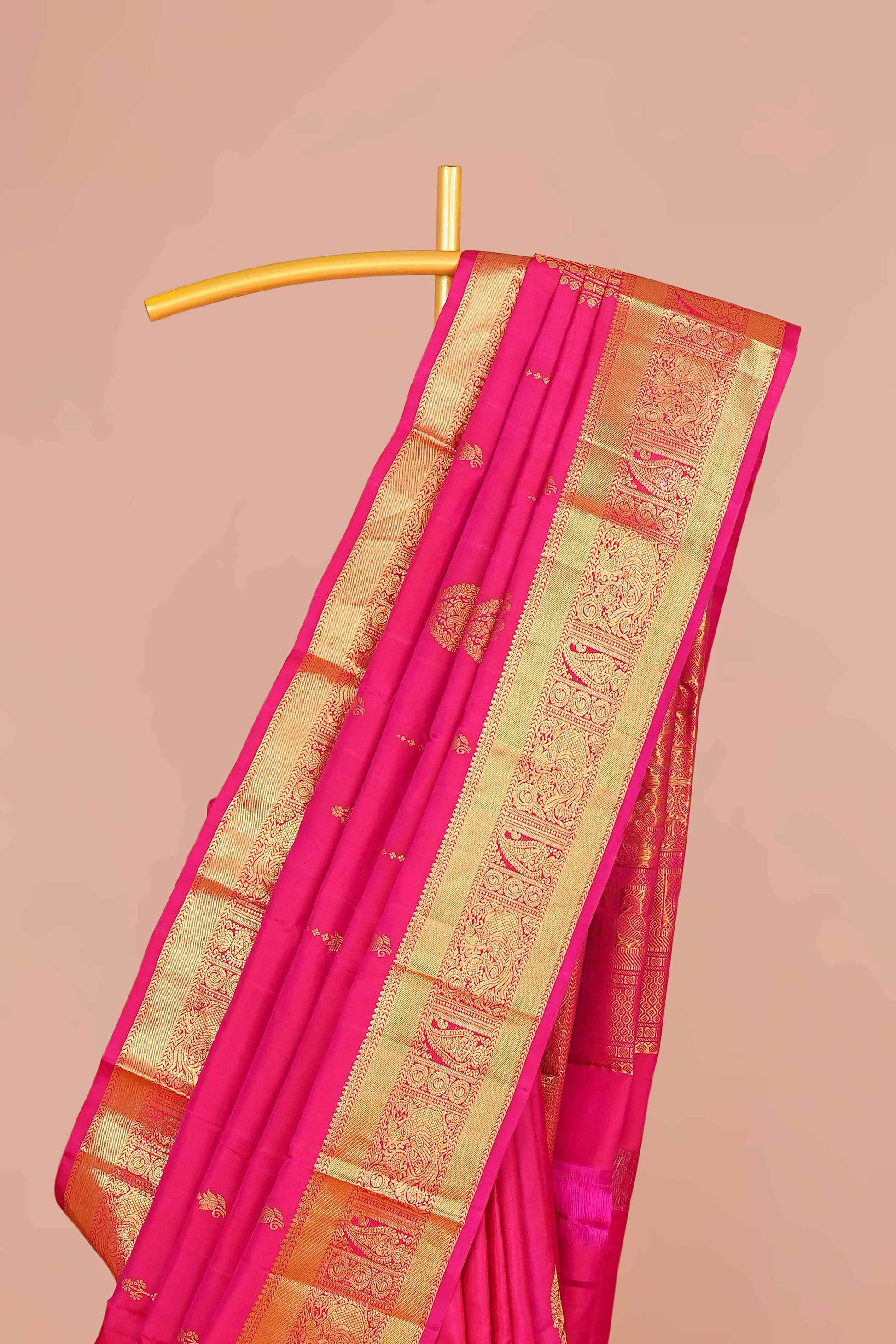 Rani Pink & Gold Self-Butta Kanchipuram Pure Silk Saree with Rich Zari Border