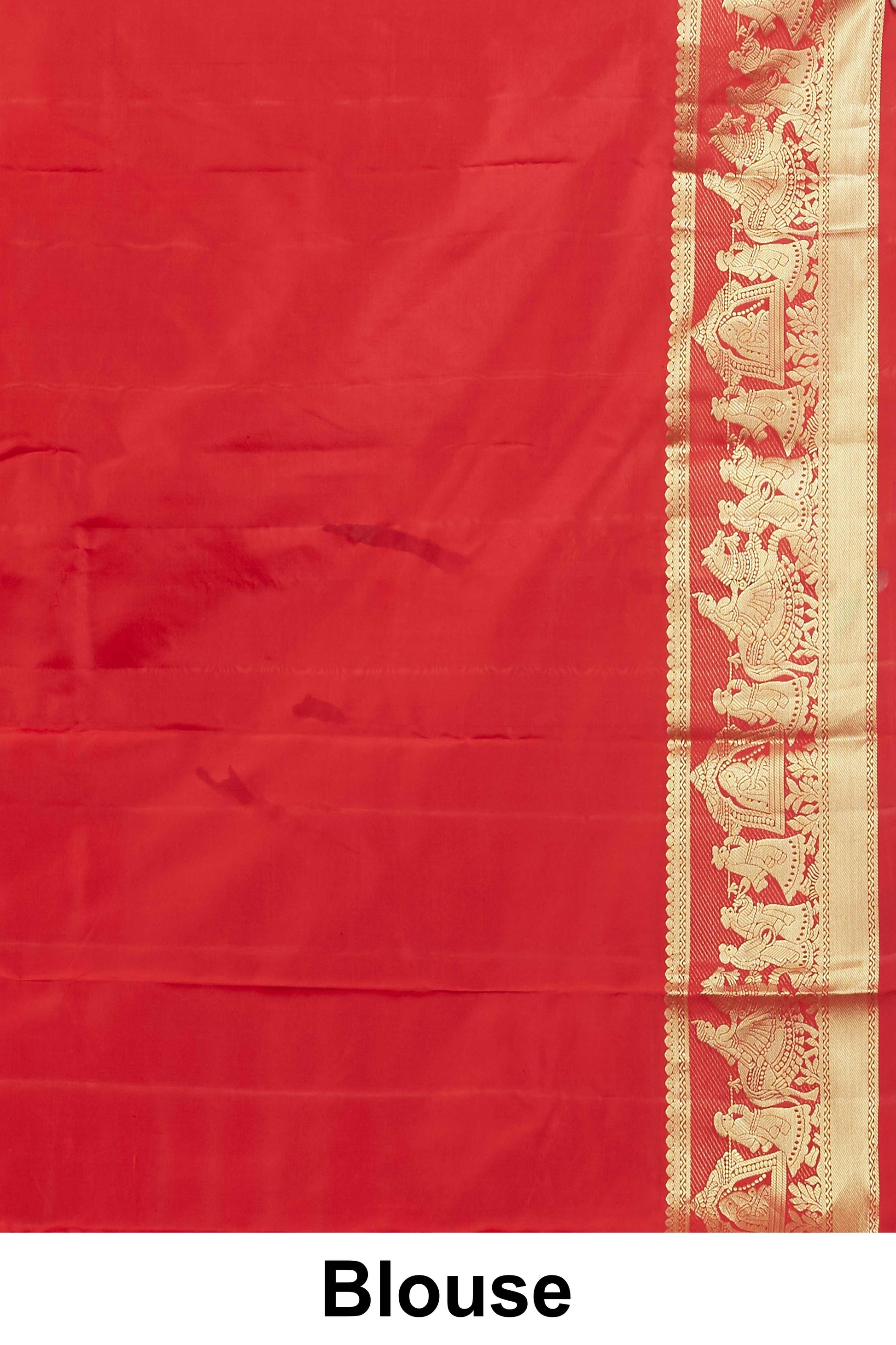 Kanchipuram Traditional Silk Saree in Bright Red with Gold Zari Pallu and Contrast Border