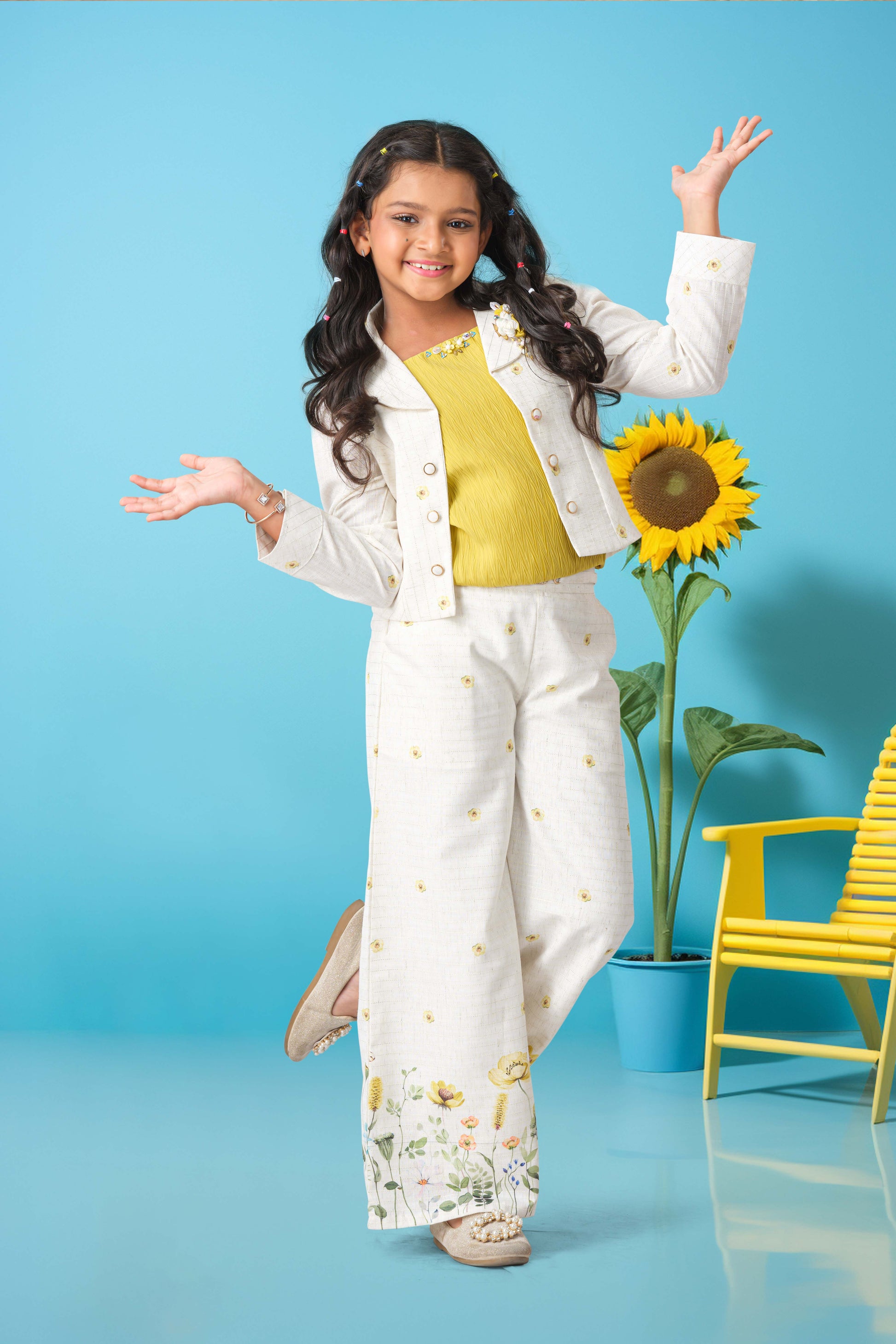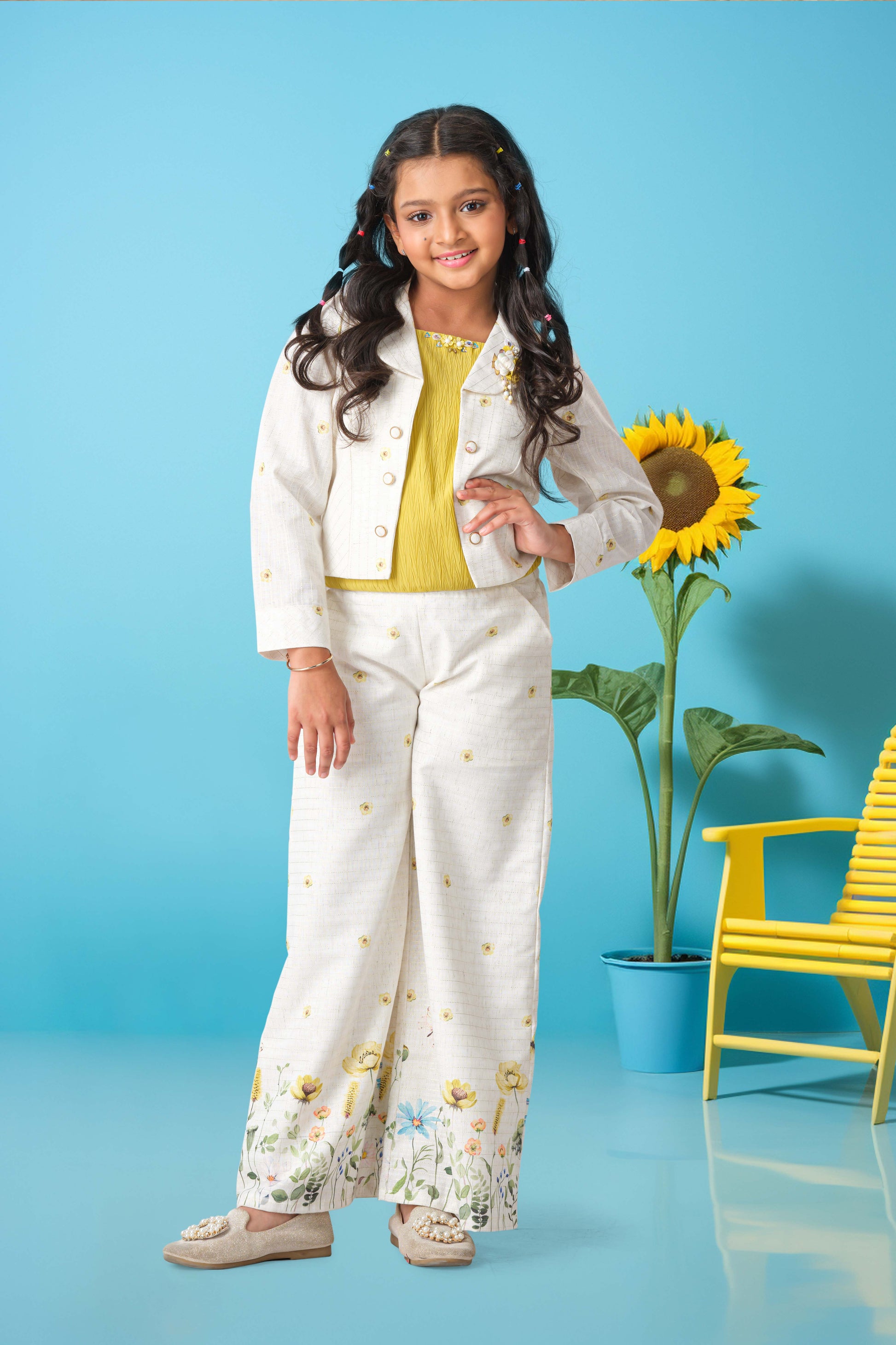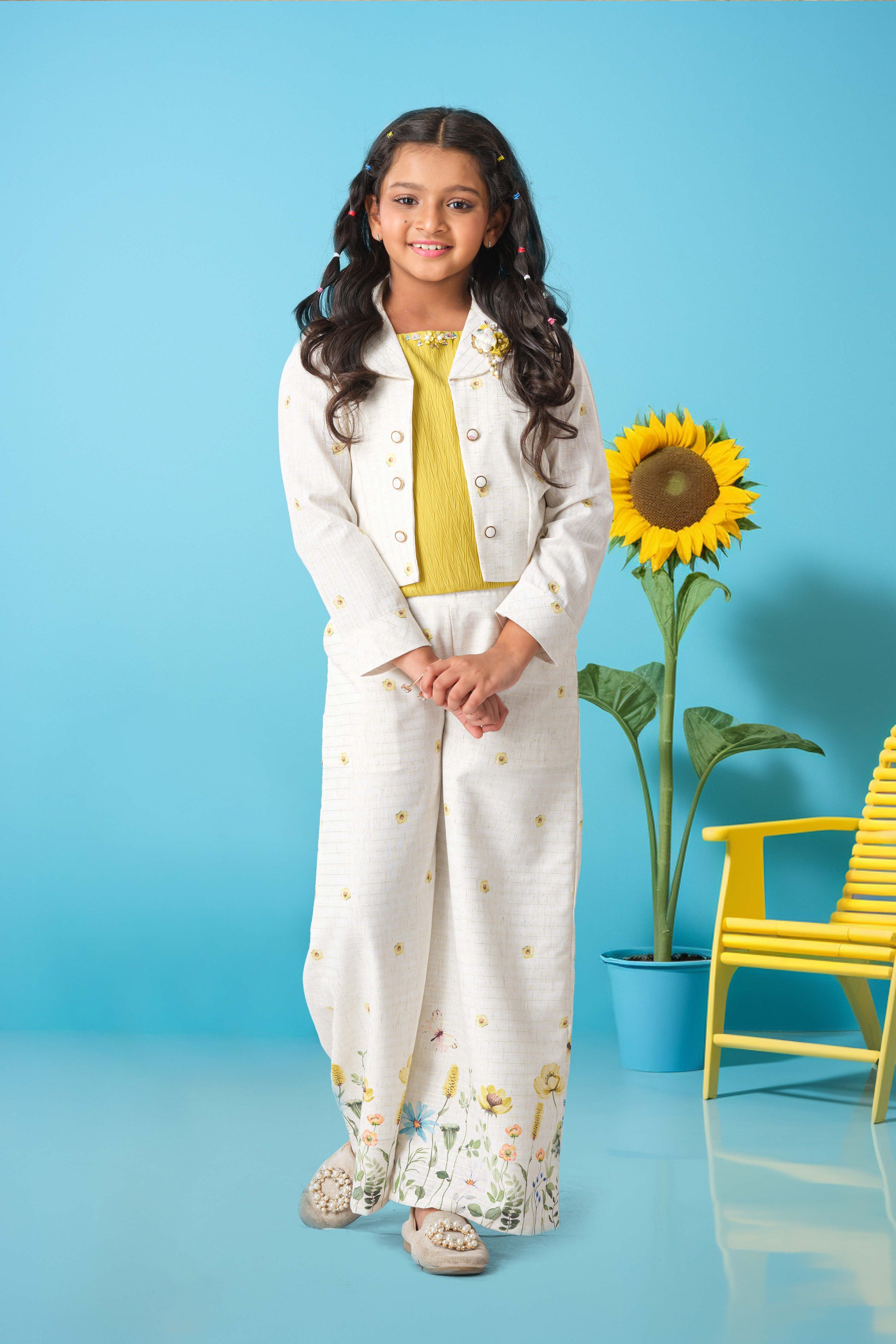 Coat Set Crop Top & palazzo All - Over Flower Motifs
