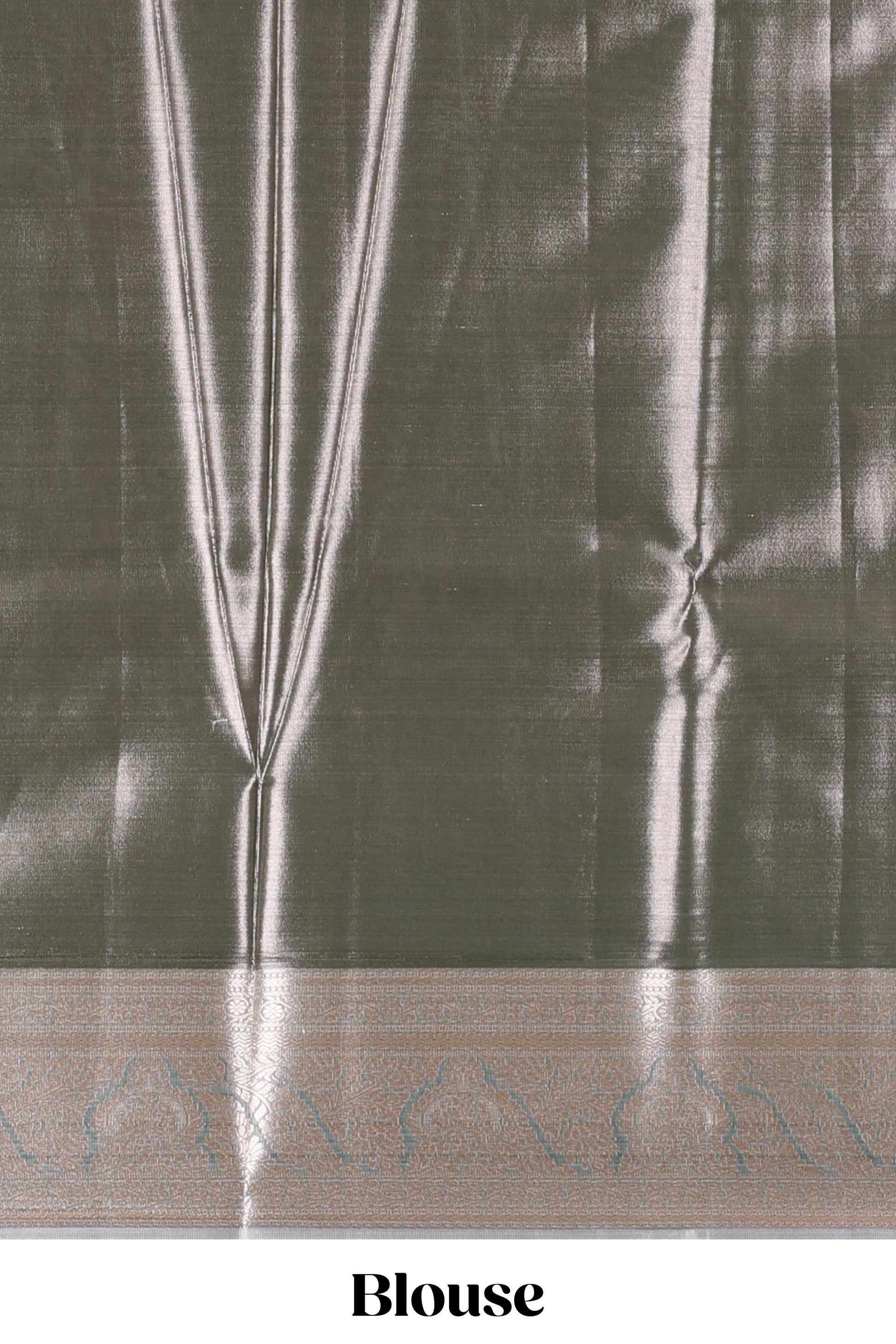 Grey semi banaras tissue saree with floral motifs and zari border