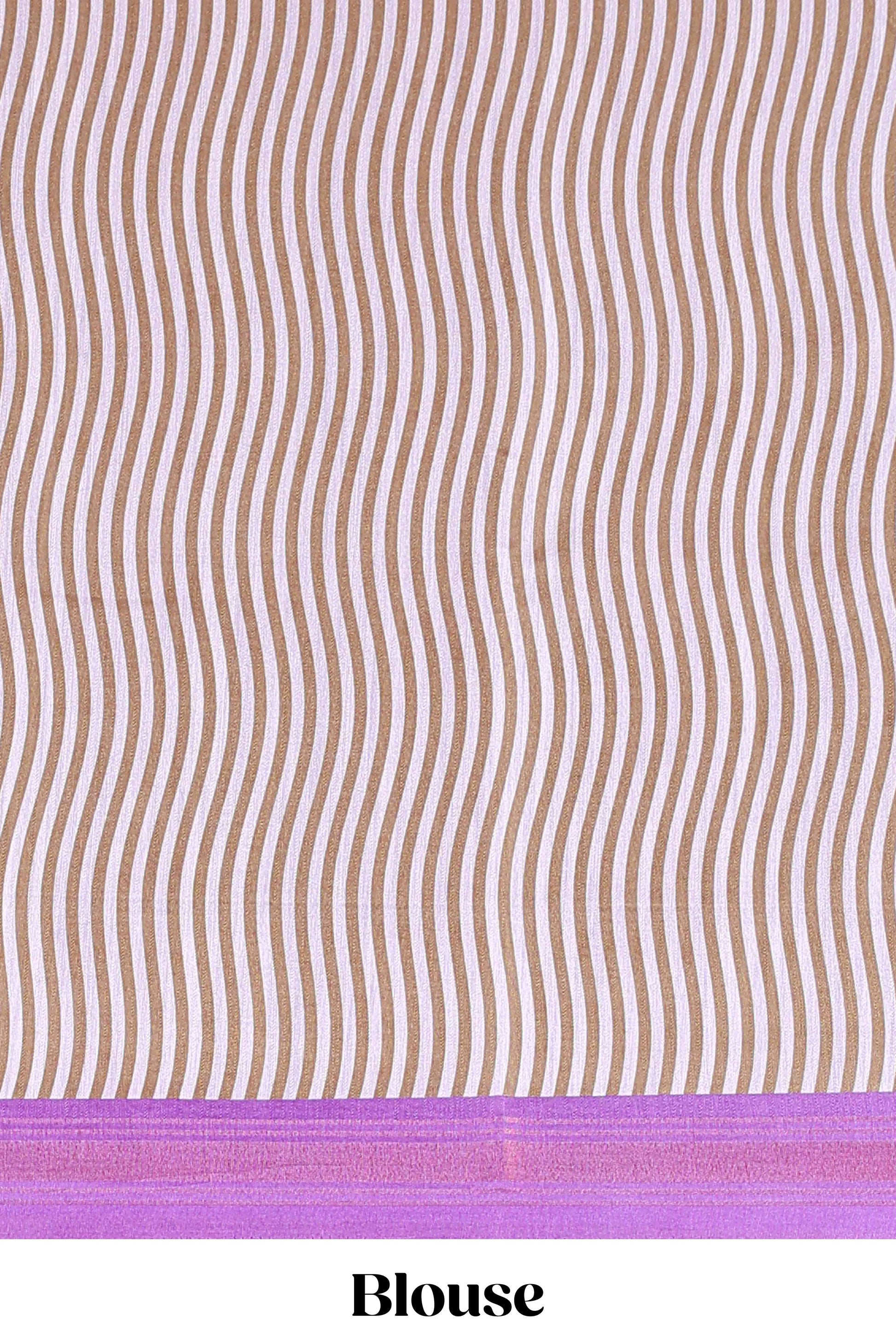 Lavender tussar silk saree with chevron ikkat design and geometrical zari border and pallu